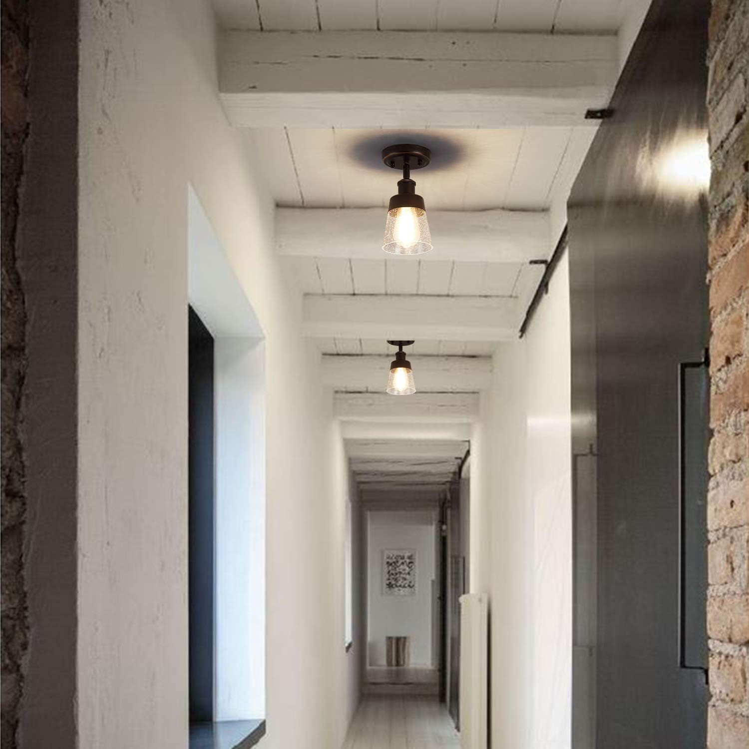 Rustic Glass Flush Mount Light Fixture Mini Clear Seeded Glass Shade Semi Flush Mount Ceiling Light for Hallway Farmhouse Kitchen Entryway, Oil Rubbed Bronze