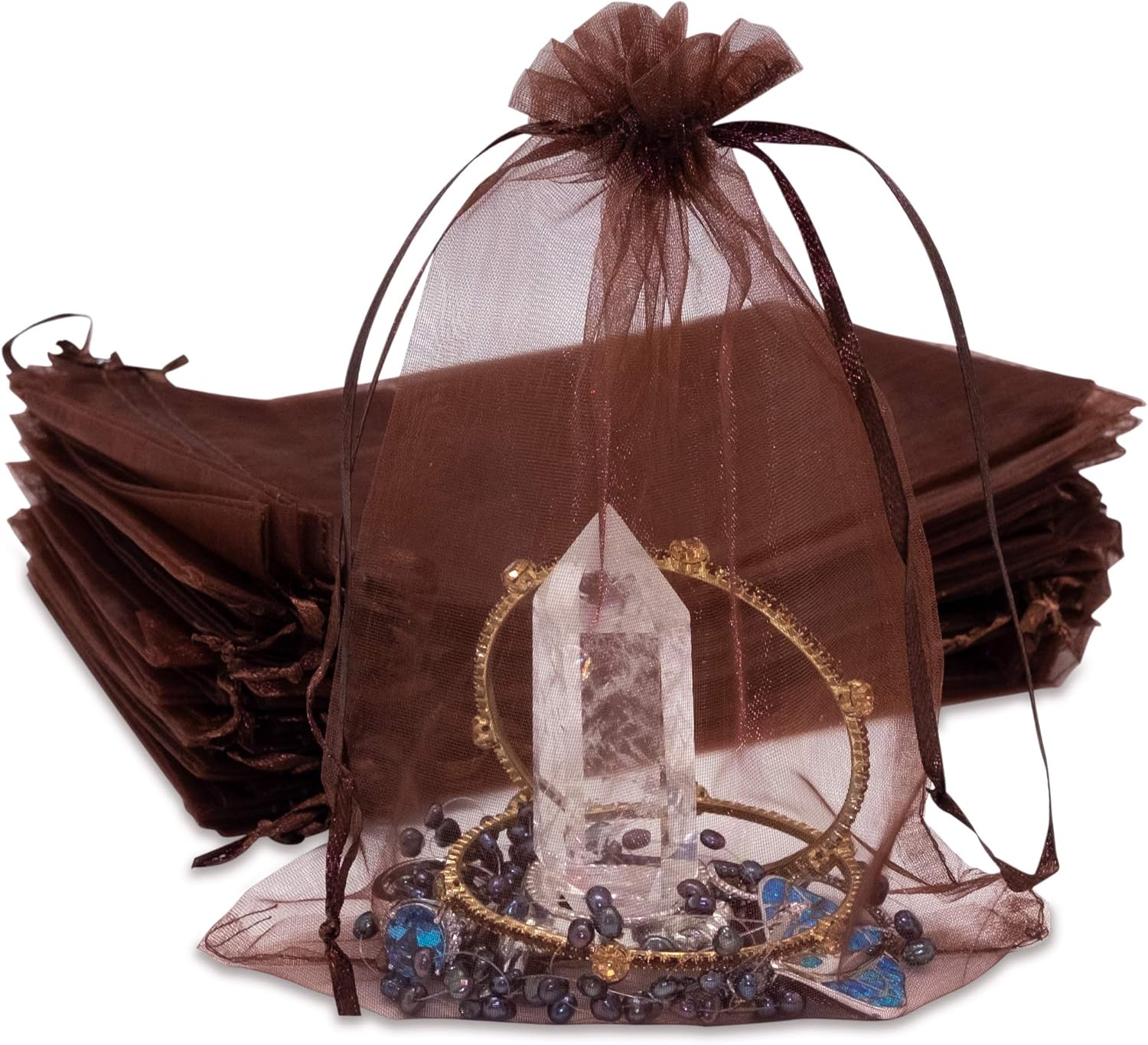TheDisplayGuys 100-Pack 6x8 Brown Sheer Organza Gift Bags with Drawstring, Jewelry Candy Treat Wedding Party Favors Mesh Pouch
