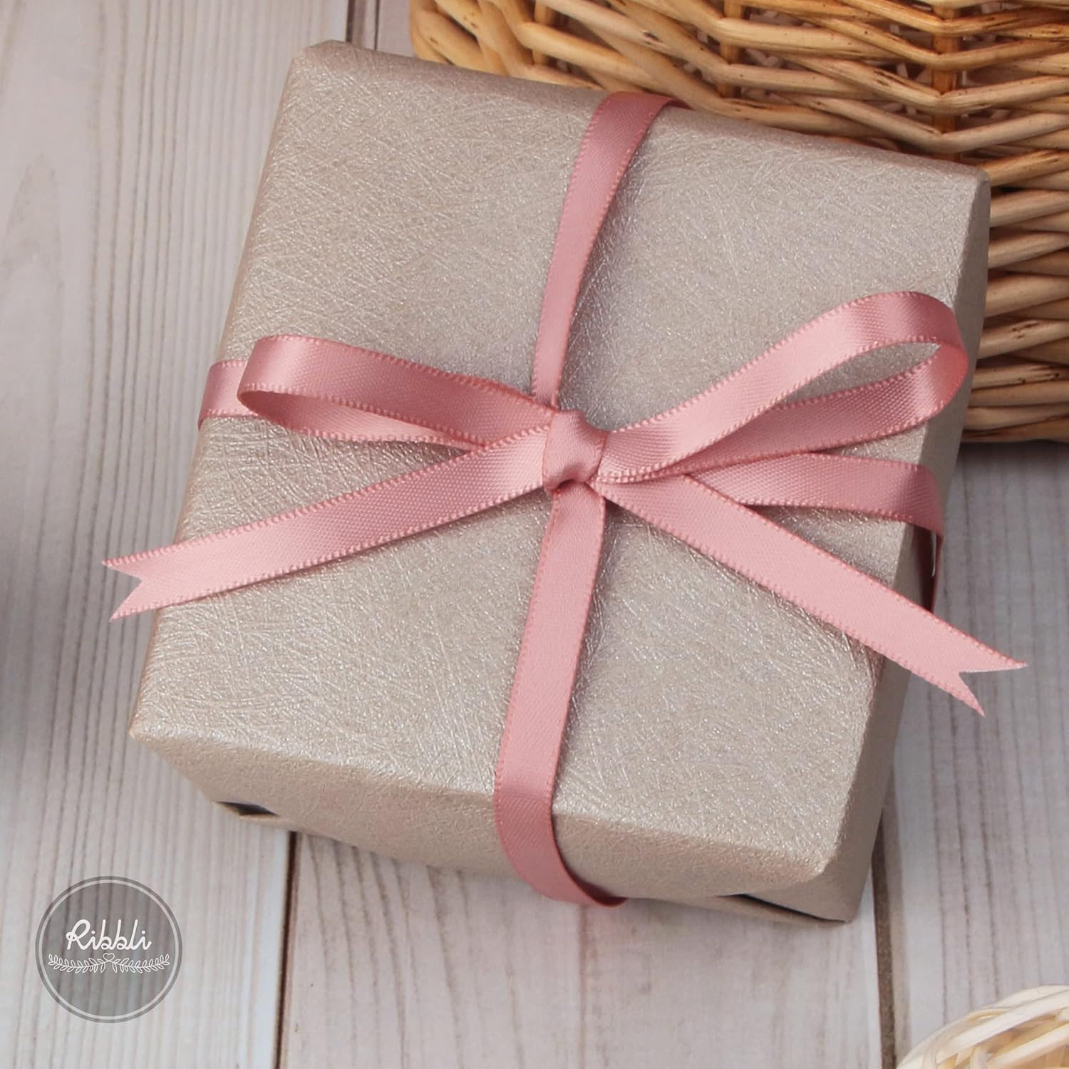 Ribbli Double Faced Dusty Pink/Rose Gold Satin Ribbon,1/4” x Continuous 25 Yards,Use for Craft Bows Bouquet, Gift Wrapping, Wedding Decoration, Floral Arrangement