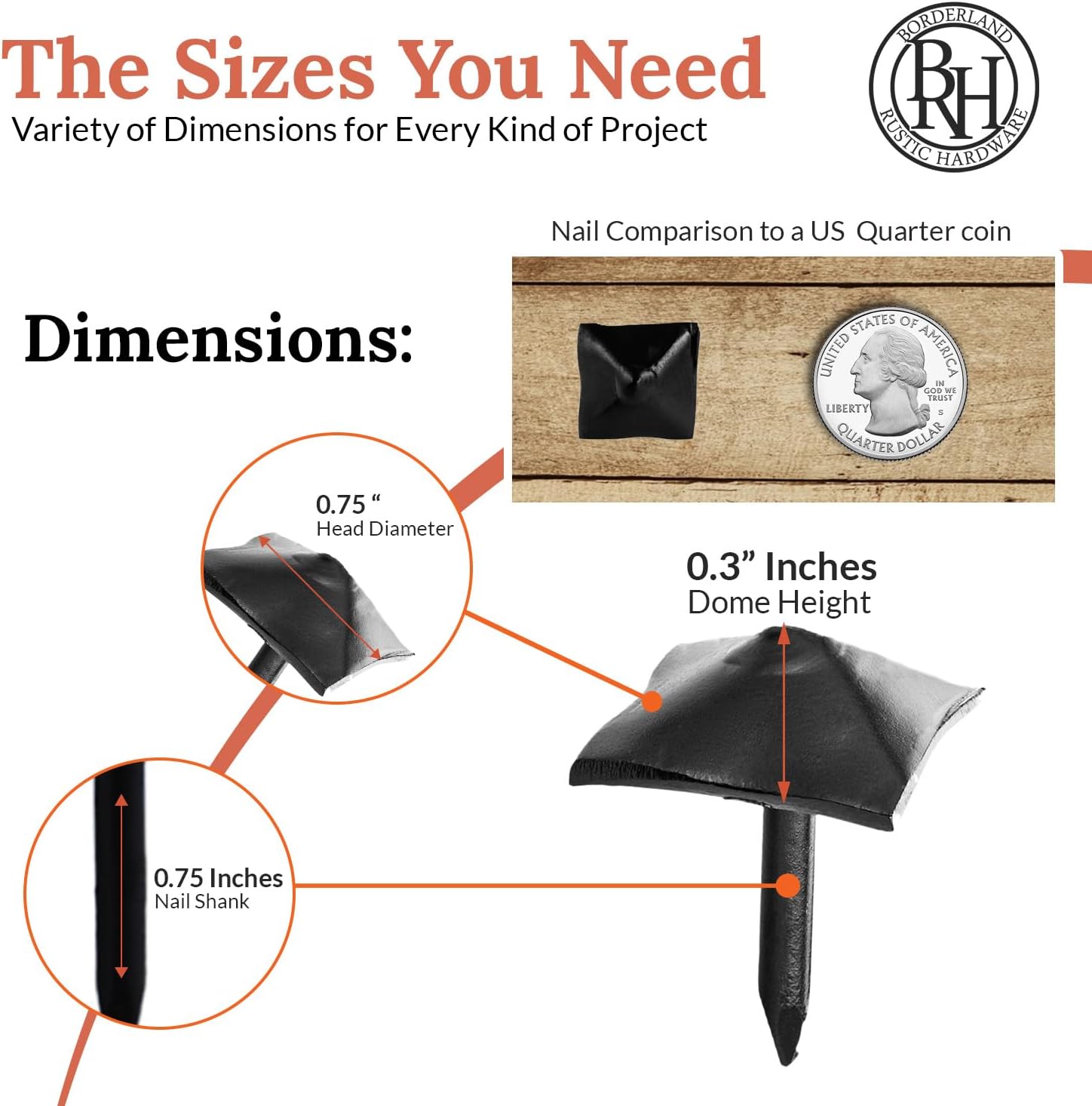 100 Pack 0.75" Square Head Iron Clavos Decorative Nails – Black – Handmade Rustic Square Fasteners for Farmhouse Shutters, Faux Wood Beams, Barn Doors, Shutters, and Gates – Ornamental Wood Accent