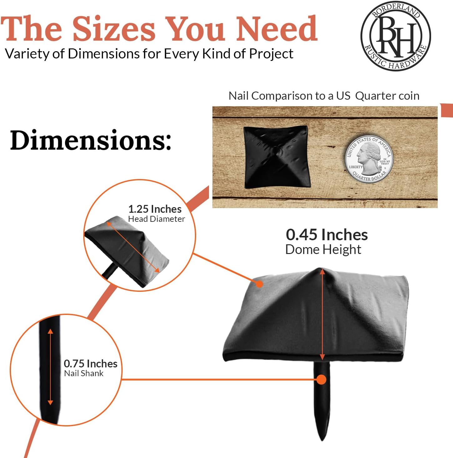 100 Pack 1.25" Square Head Iron Clavos Decorative Nails – Black – Handmade Rustic Square Fasteners for Farmhouse Shutters, Faux Wood Beams, Barn Doors, Shutters, and Gates – Ornamental Wood Accent