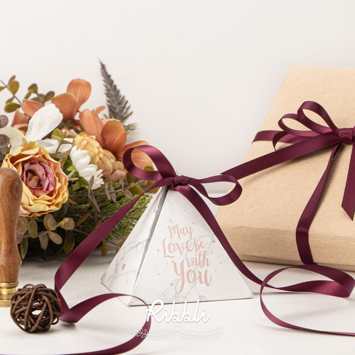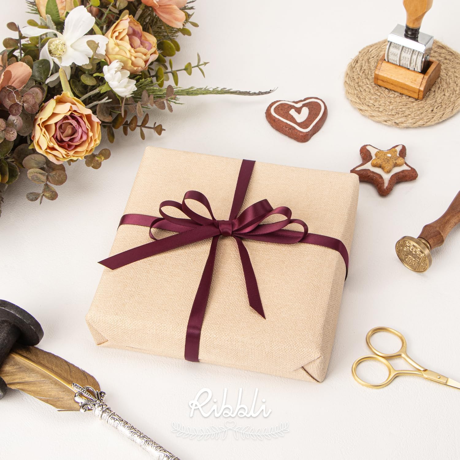 Ribbli Double Faced Burgundy Satin Ribbon,3/8” x Continuous 25 Yards,Use for Bows Bouquet,Gift Wrapping,Floral Arrangement