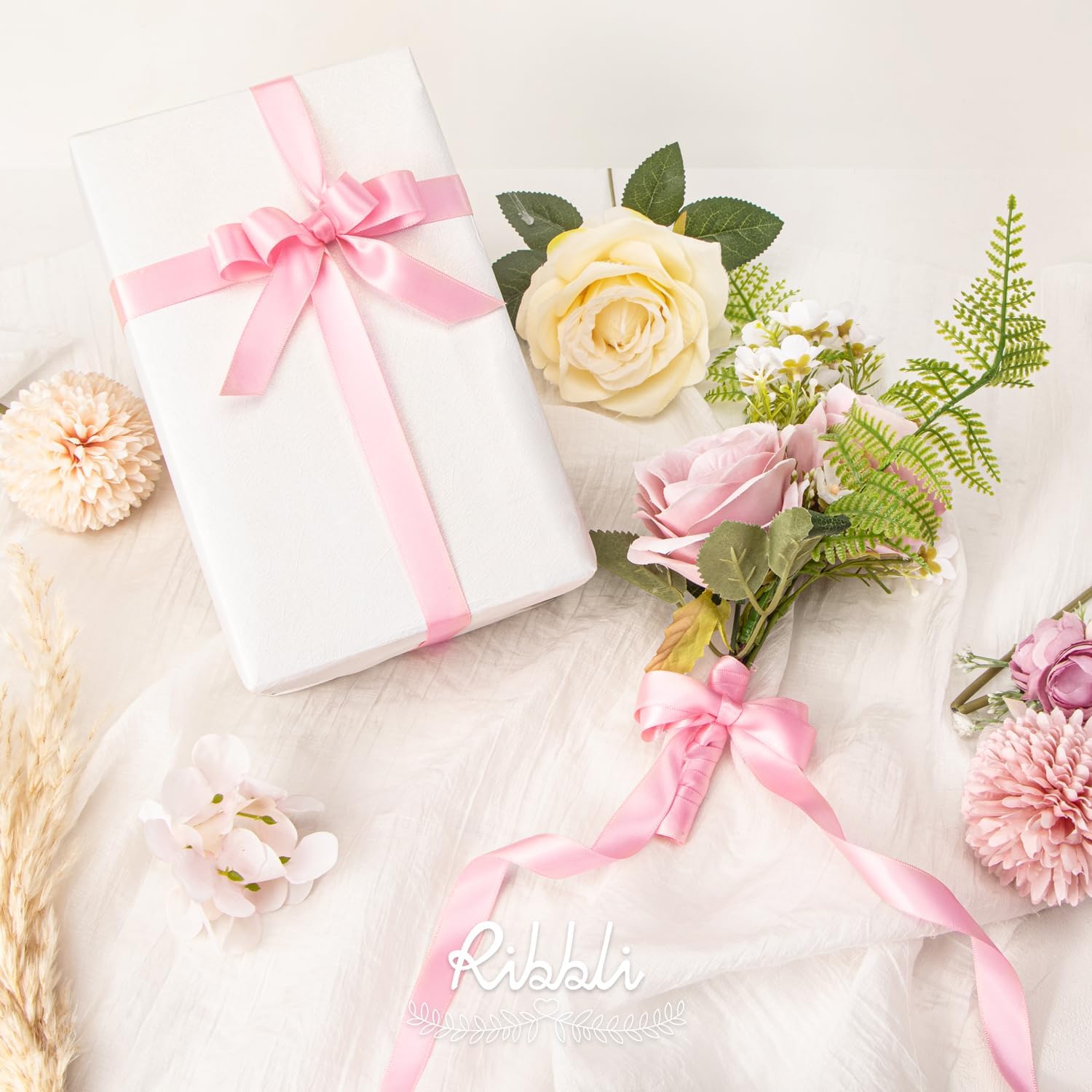 Ribbli Pink Satin Ribbon 5/8 inch x Continuous 25 Yards,Double Faced Satin Use for Craft, Gift Wrapping, Christmas Ornaments, Hair Bows, Bouquet Bows