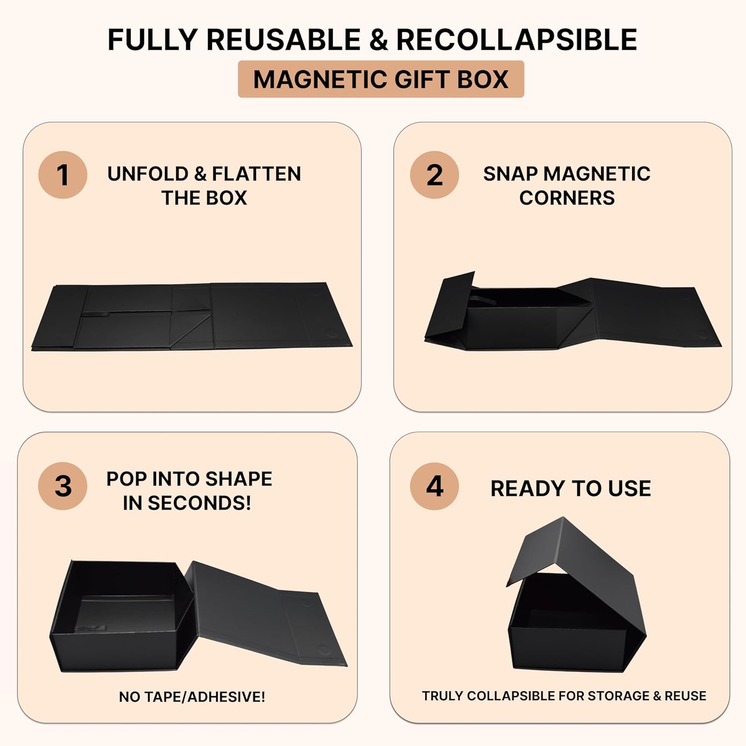 - π§π₯π¨ππ¬ ππ’ππππ£π¦ππππ - ππ’π₯ π¦π§π’π₯πππ ππ‘π π¨π¦π π’π©ππ₯ ππ‘π π’π©ππ₯ πππππ‘: Unlike competitors that use stickers and tape to hold the box in shape, the CECOBOXβs innovative design is truly collapsible. Simply open the box, pull the ribbon tab to collapse the back to flat for storage, and for use over and over again like NEW!
