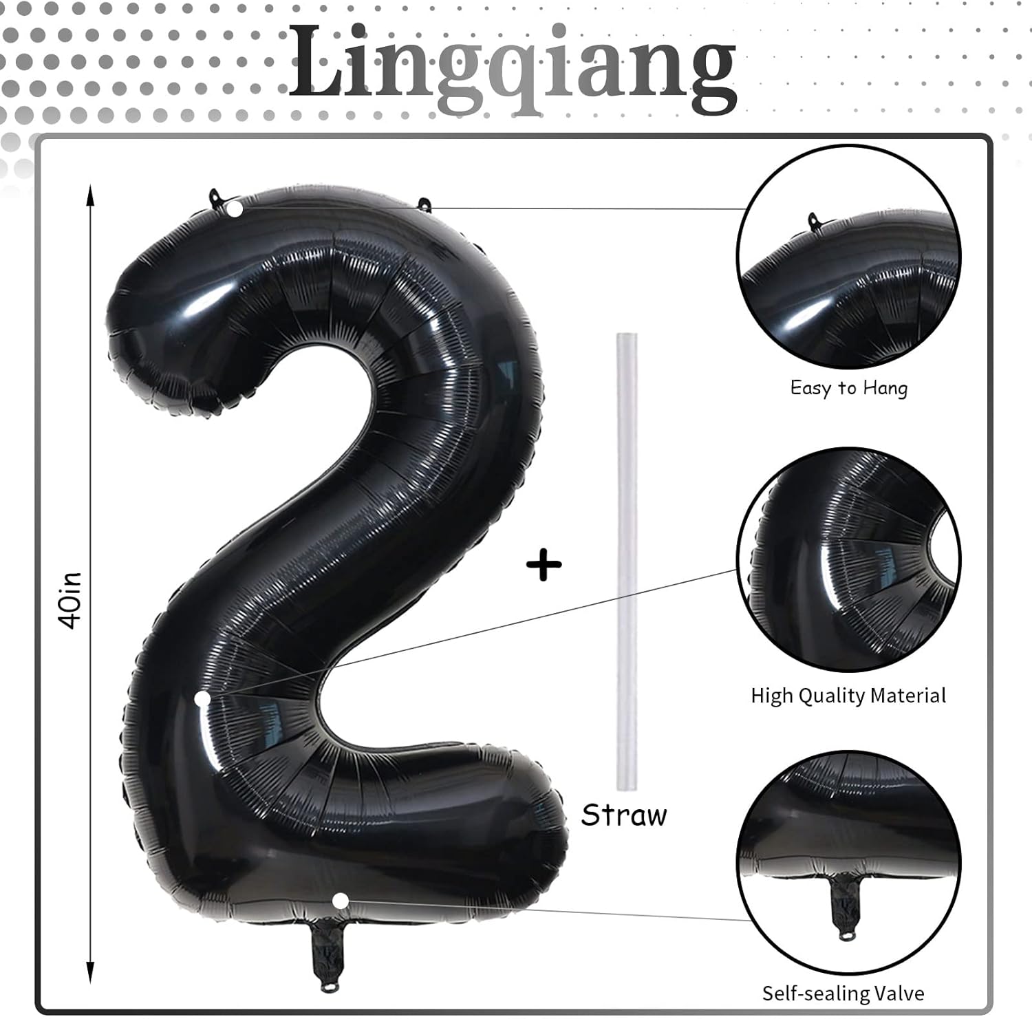 - π Black Number 2 Balloon π - You will get 1pc 40 inch mylar foil number 1 balloon and 1pc straw. Perfect for 2nd 12th 20th 21st 25th birthday or anniversary party decorations supplies.