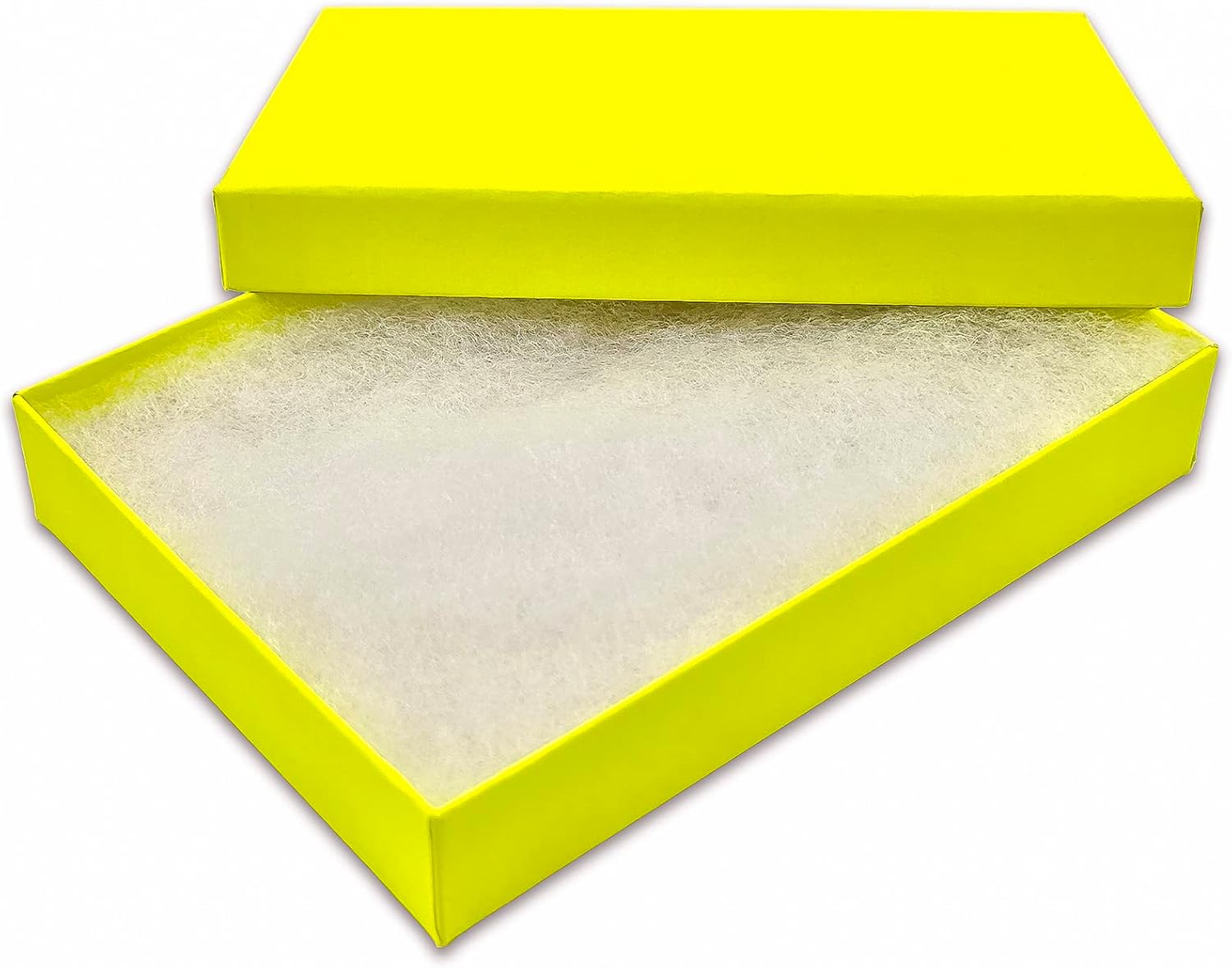 TheDisplayGuys - 25-Pack #53 Kraft Paper Cardboard Gift Boxes/Jewelry Cases w. Cotton Padding & Lid - Neon Yellow - (5.4" x 3.9" x 1.0")