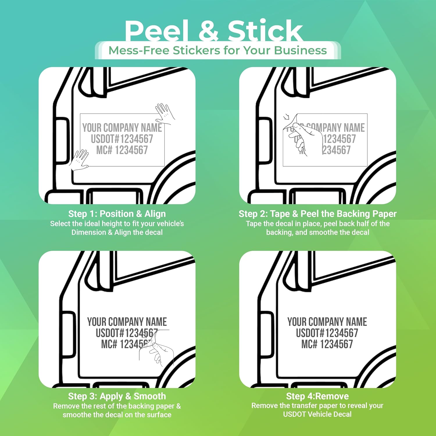 - CUSTOMIZABLE TRUCK DOOR VINYL STICKERS DECALS: Customize your decals for vehicles with your company name, address (optional), USDOT, MC, GVWR, VIN, and any text. We offer various options for you to select your size, color, or any other font type that suits your brand. Custom vinyl decals are ideal for business use in trucks, trailers, or fleets.