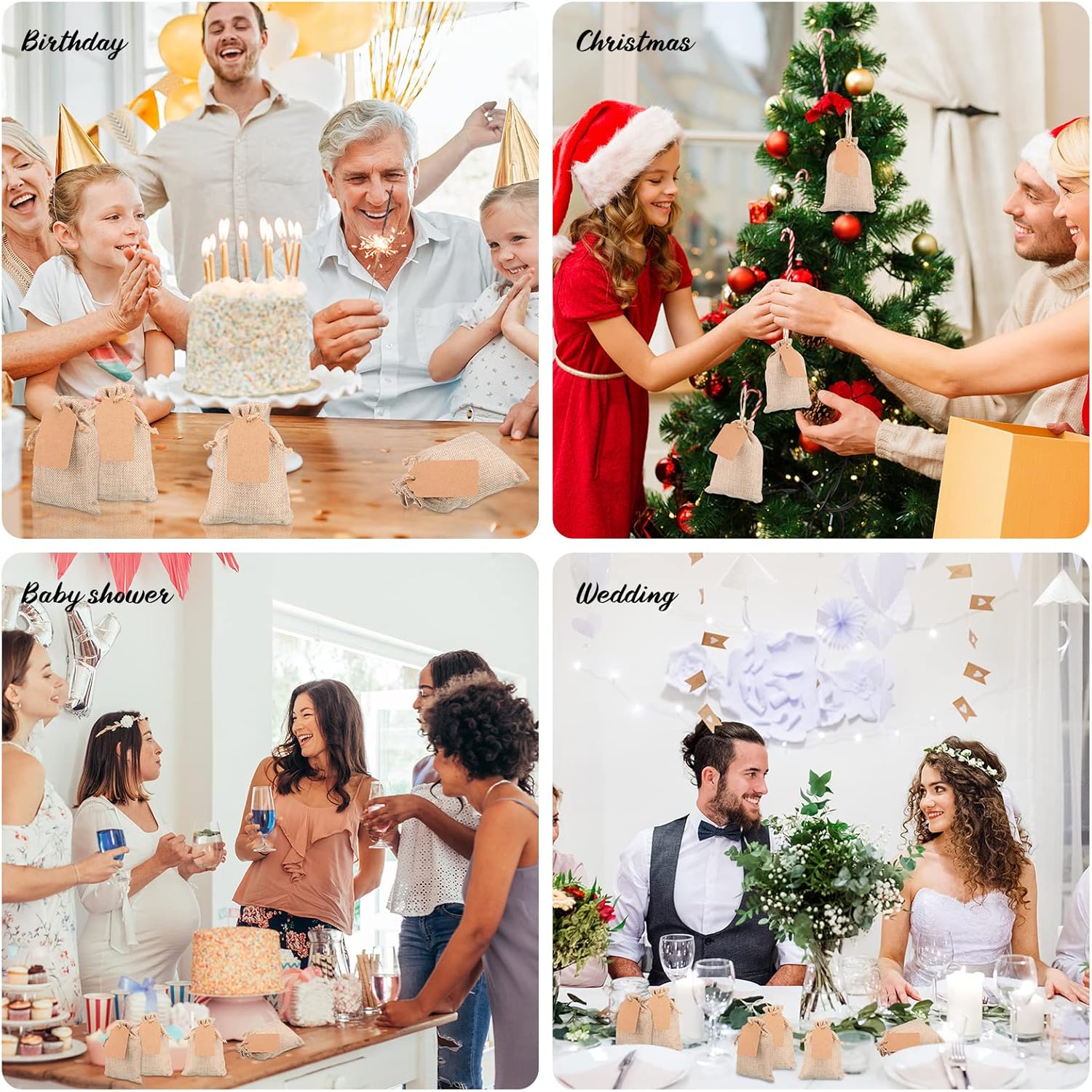 - Wide Occasions: these burlap treat bags are ideal for home parties, weddings, anniversaries, birthdays, bridal showers, housewarming, travel, holiday celebrations, family reunions, Valentine's Day, Christmas, Thanksgiving, New Year and other festivals, giving small gifts to friends and family members during the holidays