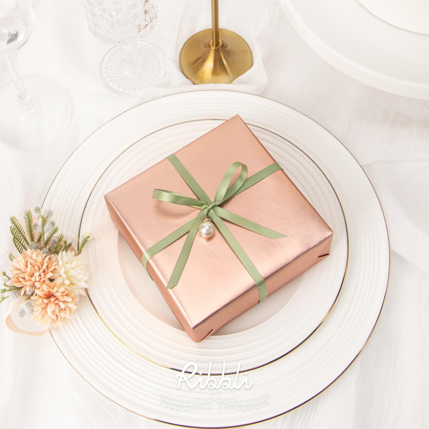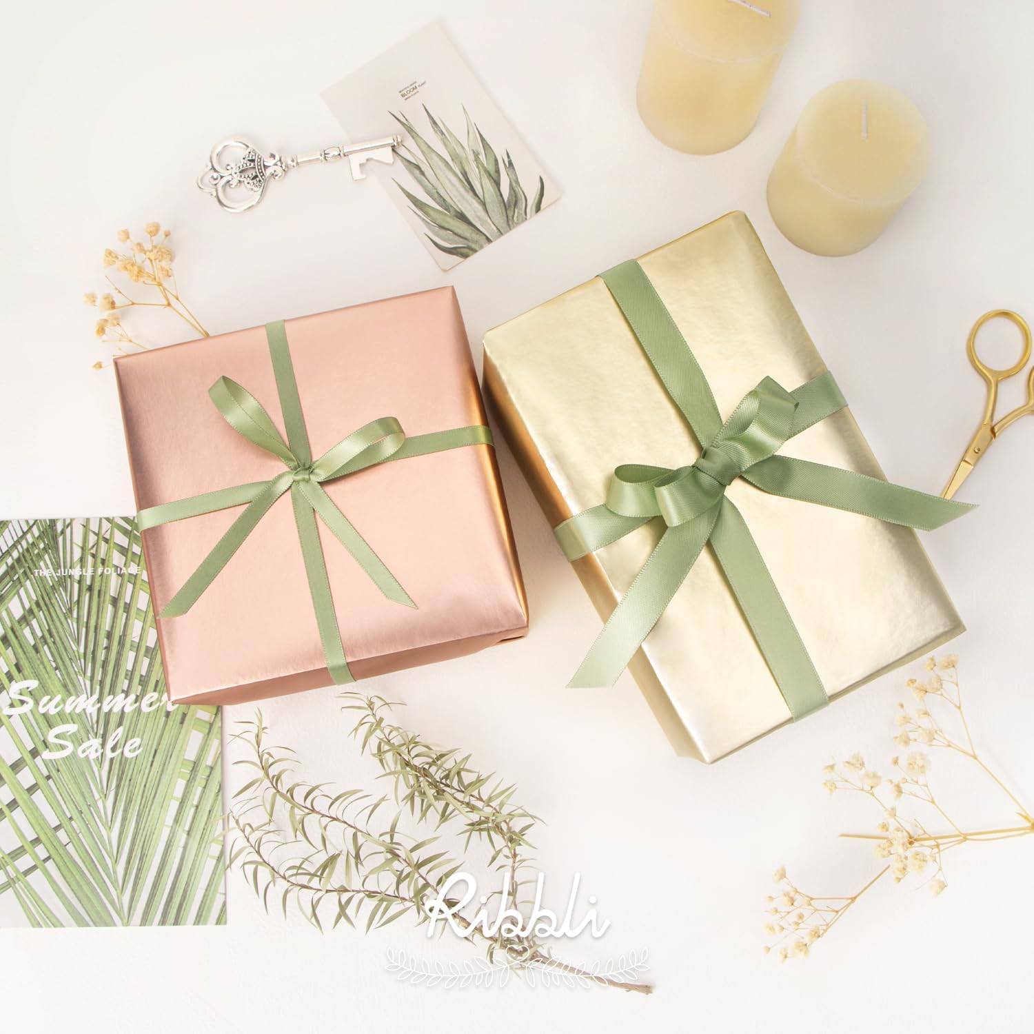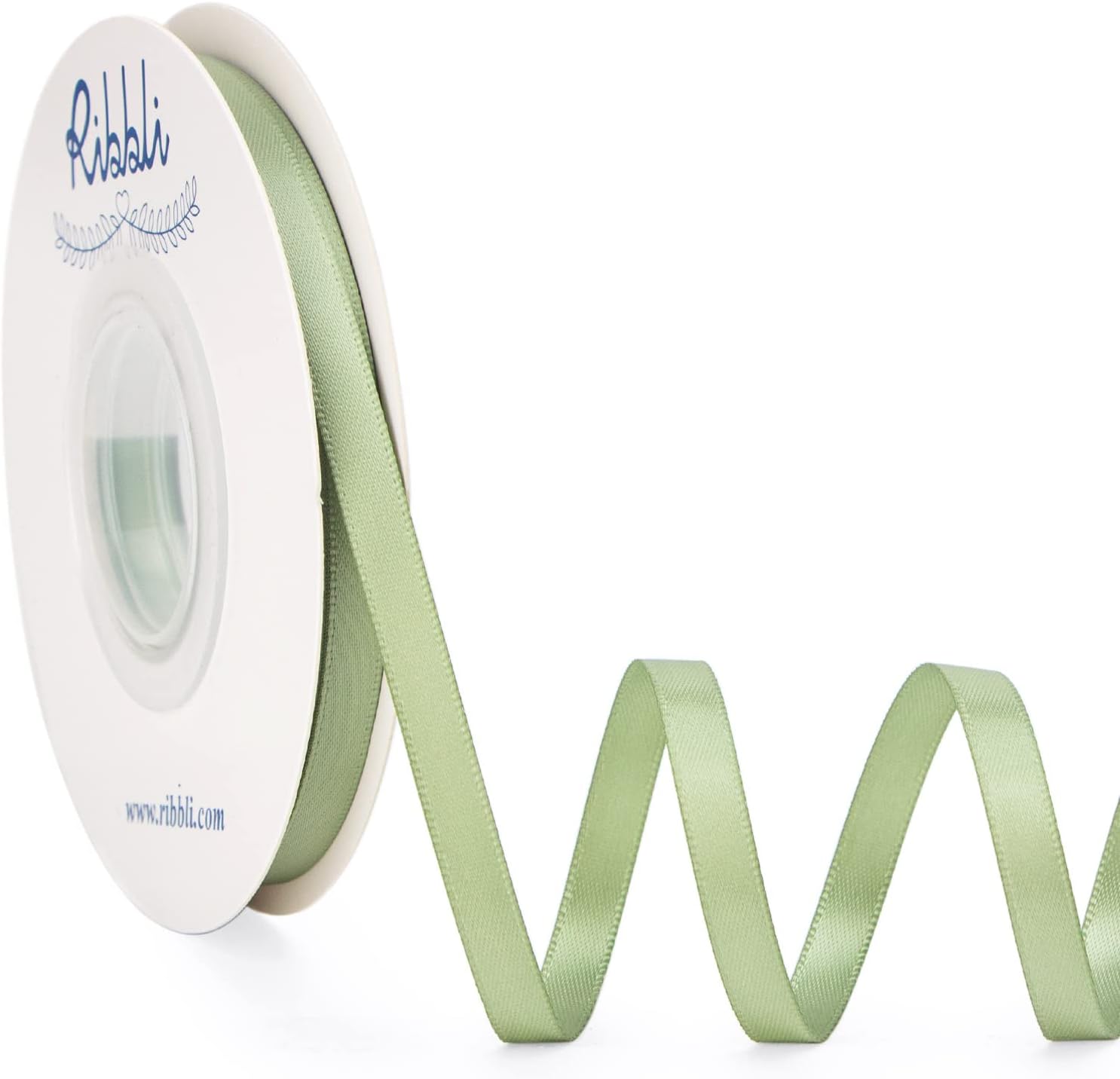 Ribbli Dusty Sage Satin Ribbon Double Faced Satin 1/4 Inch x Continuous 25 Yards-Sage Green Ribbon for Gift Wrapping Crafts Wedding Decoration Bows Bouquet Floral Arrangement