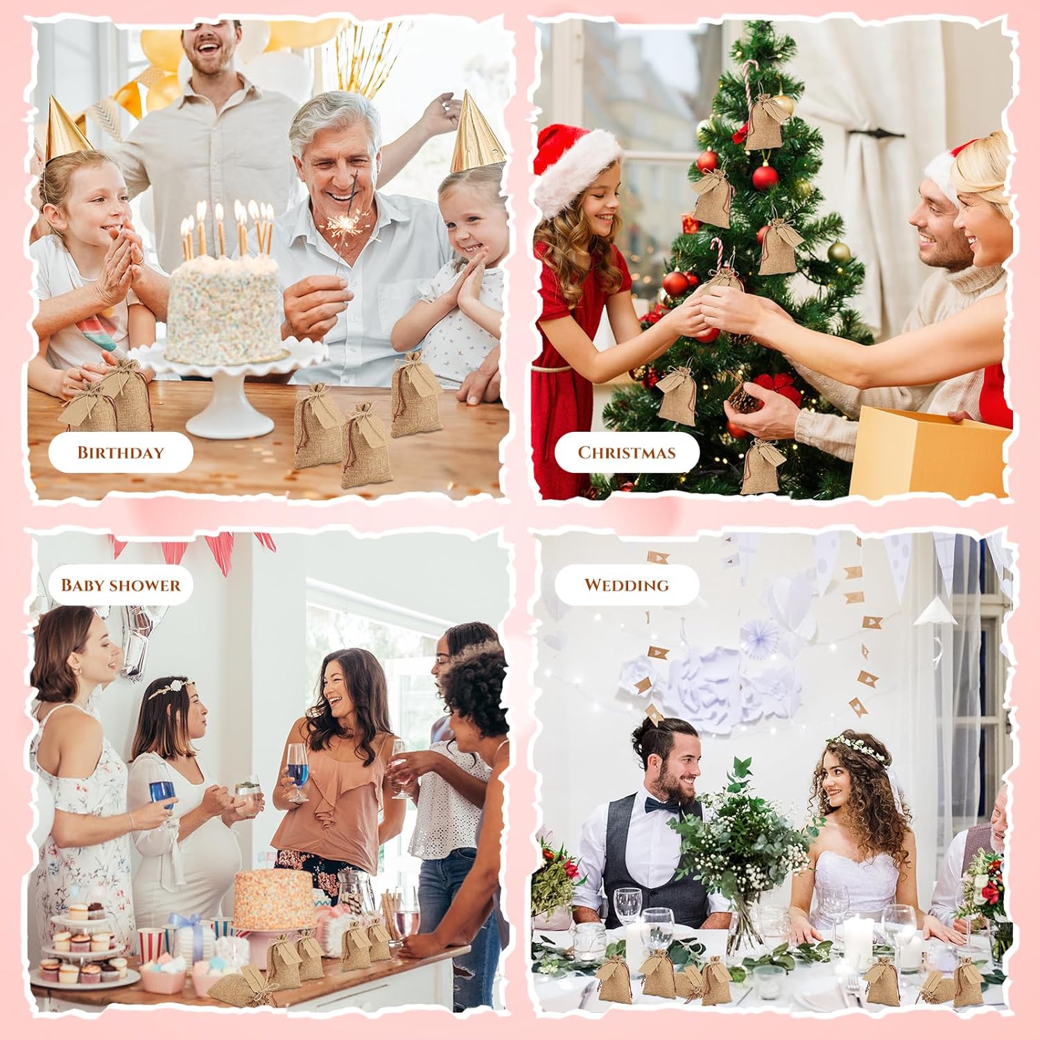 - Wide Occasions: these burlap treat bags are ideal for home parties, weddings, anniversaries, birthdays, bridal showers, housewarming, travel, holiday celebrations, family reunions, Valentine's Day, Christmas, Thanksgiving, New Year and other festivals, giving small gifts to friends and family members during the holidays