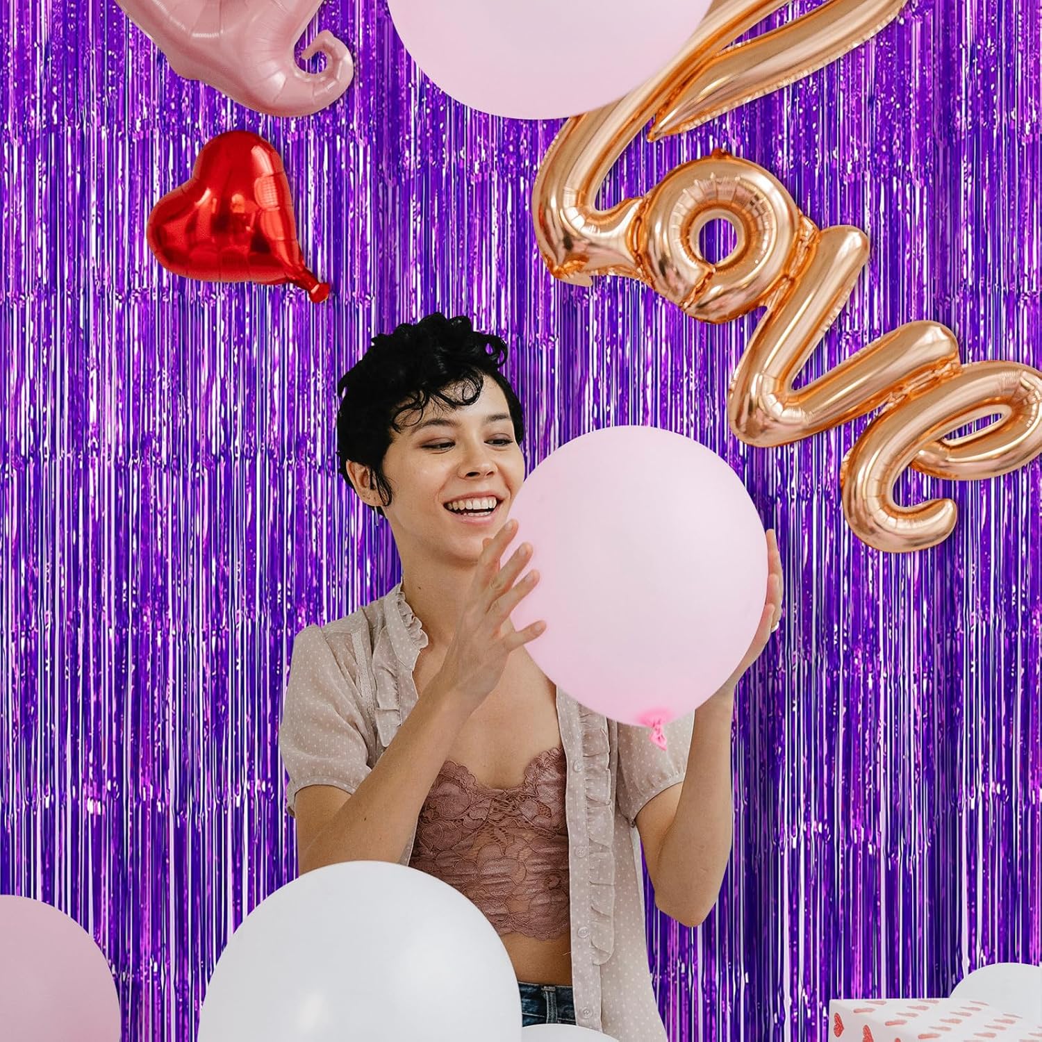 10 Pack Purple Backdrop Curtain 3.2ft x 8.2ft Metallic Tinsel Foil Fringe Curtains Photo Booth Background for Birthday Party Decoration Baby Shower Engagement Wedding Christmas Decoration (Purple)