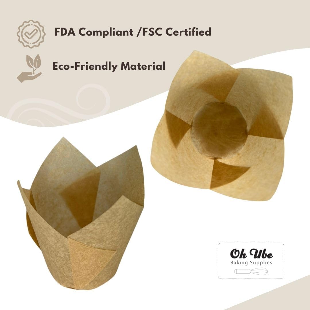 - Premium Quality: Elevate your baking with our high-quality tulip cupcake liners, made with all natural, 100% wood pulp. Premium Quality: Odorless, Non-toxic, Greaseproof, Heat-resistant up to 220Β° C / 428Β° F. Elevate your baking with our high-quality tulip baking liners.