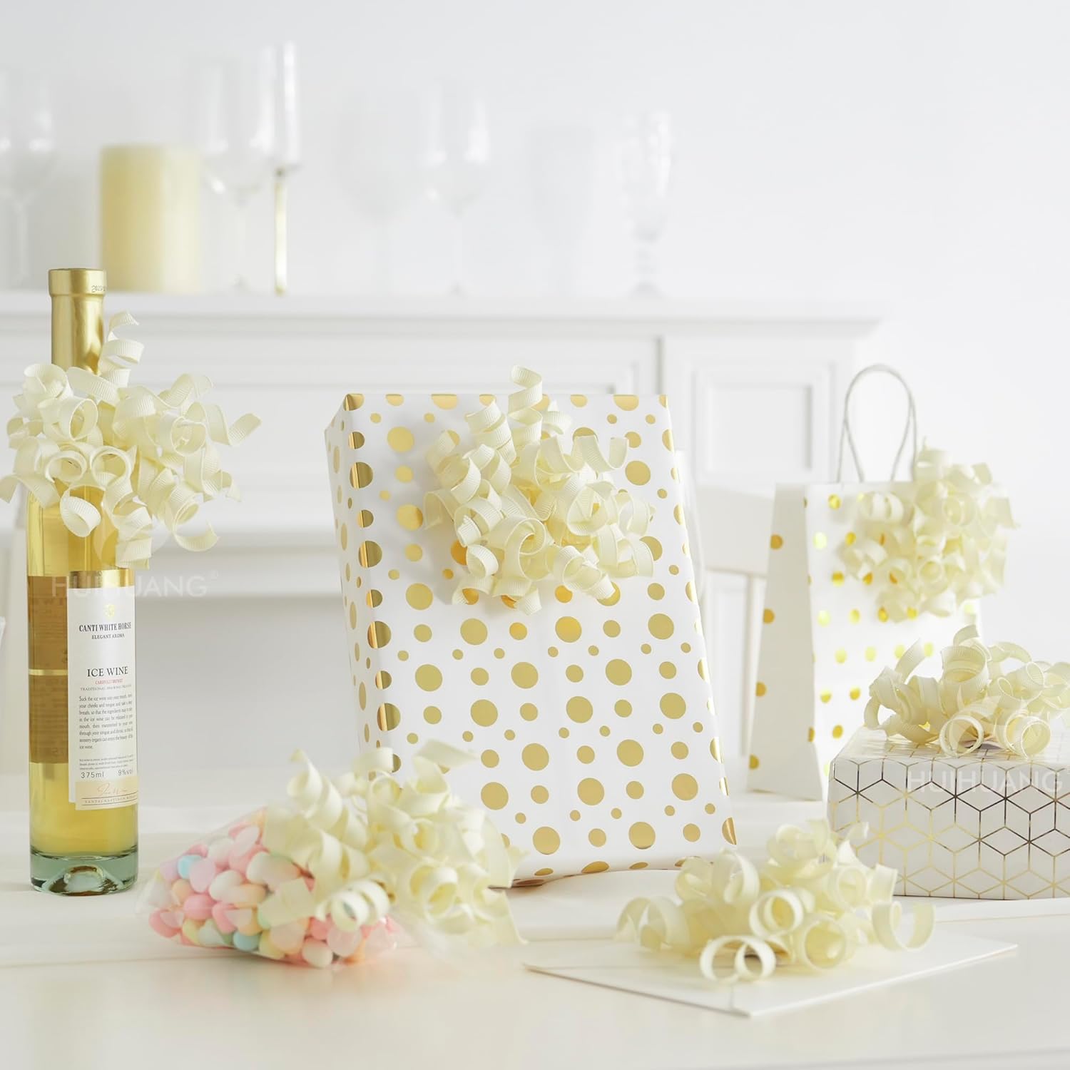 - WIDE APPLICATIONS: Curly ribbon bows is the perfect finishing touch to any gift packaging, you can create a fancy package easily, enhance the look of party favor bags or boxes at events like weddings, birthdays, and baby showers, or holiday ornaments, wine bottles, favors bags