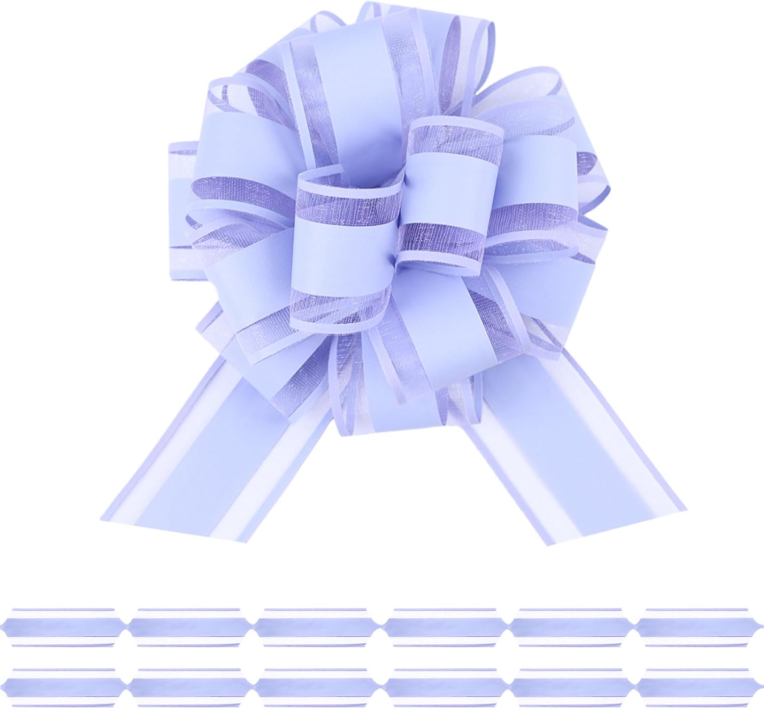6Pcs 6inch Pull Bow Gift Wrapping,Pull Bow For Gift Basket, Gift Bag Box Wrapping Decor, Valentines Day, Birthday, Anniversary, Wedding, Flower Packaging (Baby Purple)