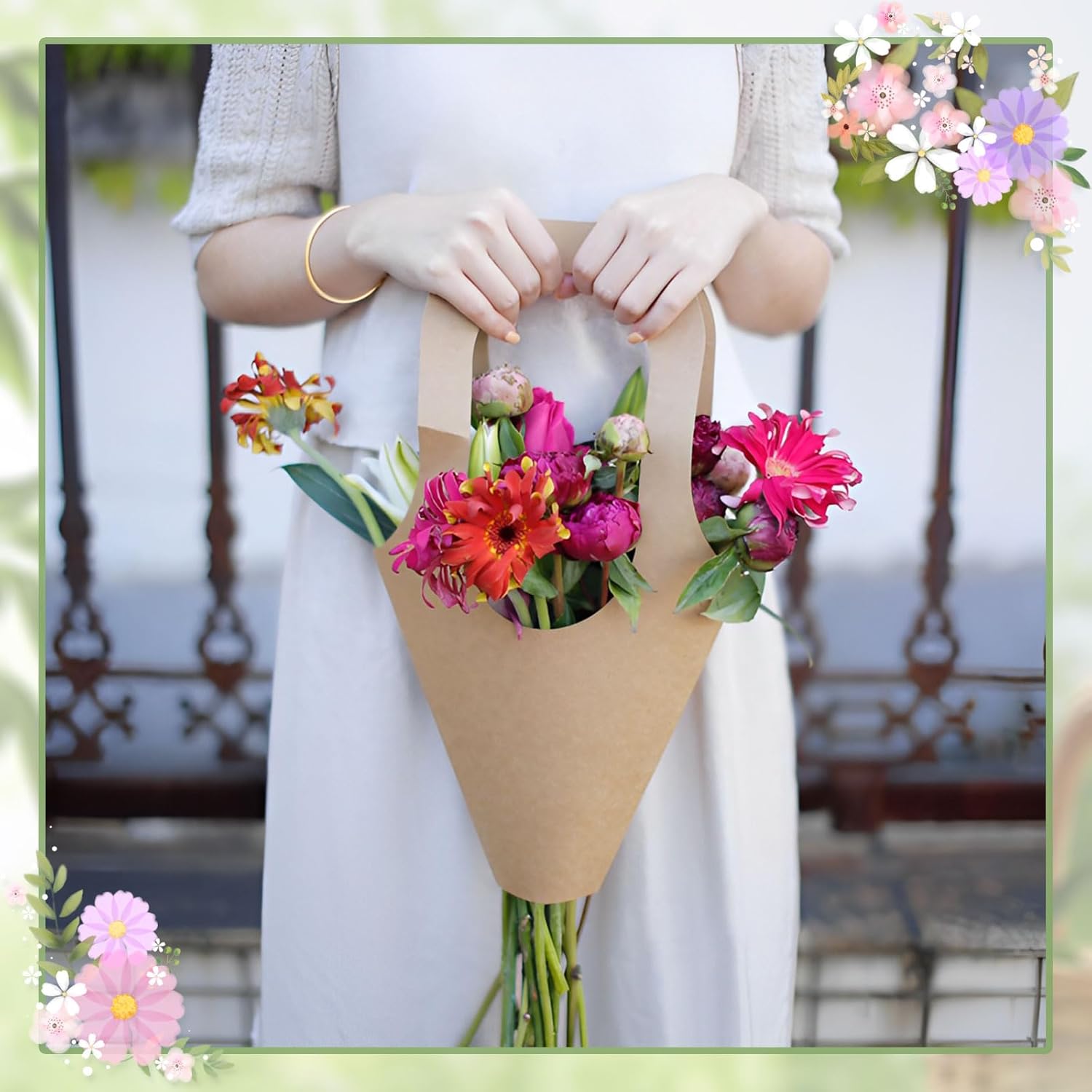 - ăKraft Paper Materială This flower bags for bouquets is made of reliable kraft paper material, sturdy and thick, safe and not easy to break or tear, lightweight and reliable, odorless and comfortable to touch, ideal for displaying beautiful bouquets or flower arrangements.