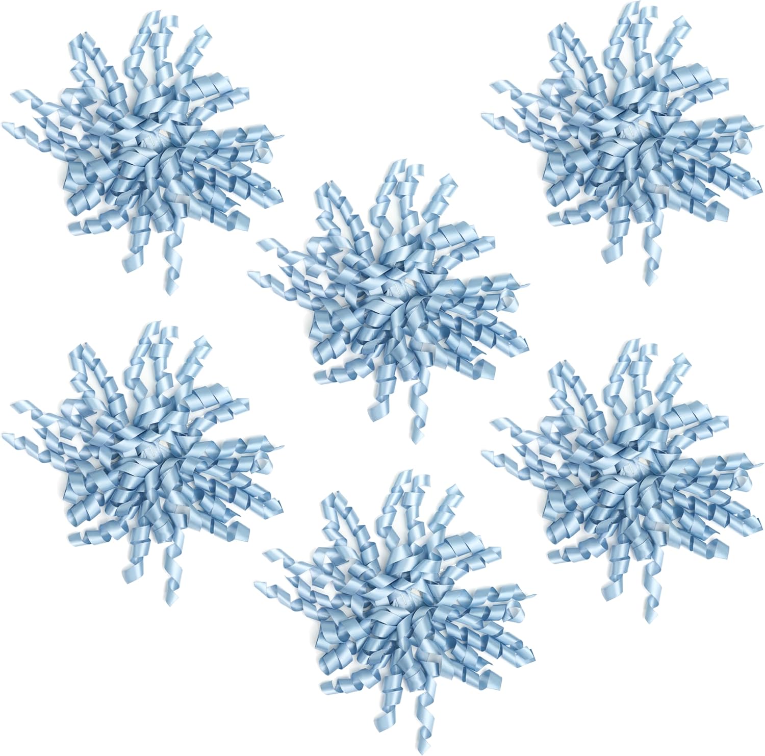 6 Inch Dusty Blue Curly Bows for Gift Wrapping Set of 6, Self Adhesive Bows French Blue Gift Bows for Presents, Satin Ribbon Bows for Birthday, Wedding, Christmas, Bridal Shower