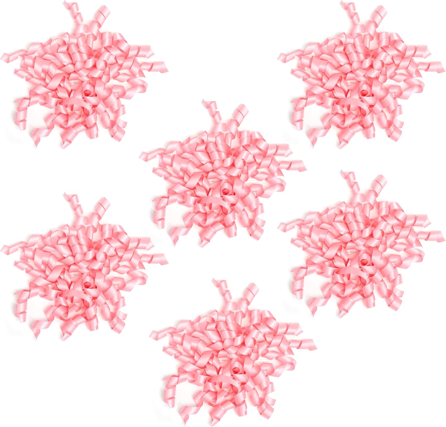 6 Inch Pink Curly Bows for Gift Wrapping Set of 6, Self Adhesive Bows Pink Gift Bows for Presents, Satin Ribbon Bows for Birthday, Wedding, Christmas, Bridal Shower, Gift Wrap Accessory