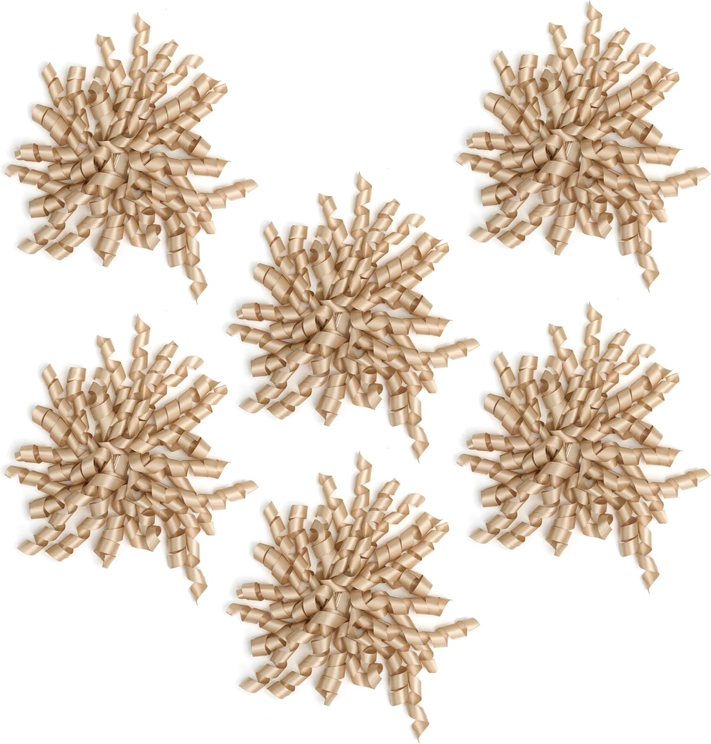 6 Inch Champagne Curly Bows for Gift Wrapping Set of 6, Self Adhesive Bows Champagne Gold Gift Bows for Presents, Satin Ribbon Bows for Birthday, Wedding, Christmas, Bridal Shower