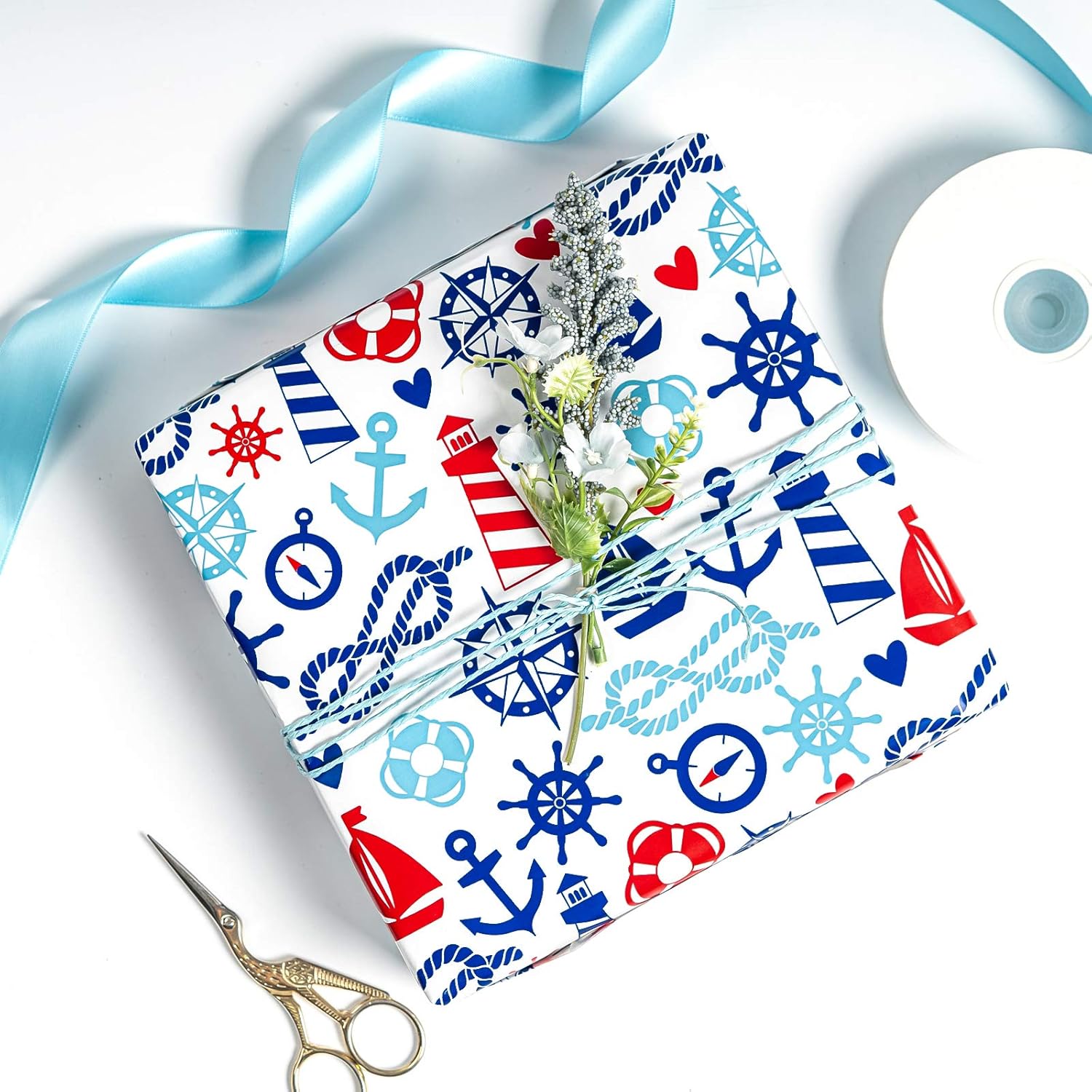 - NAUTICAL DESIGN: Multiple nautical elements printed in the paper, make your gift wrap more funny.