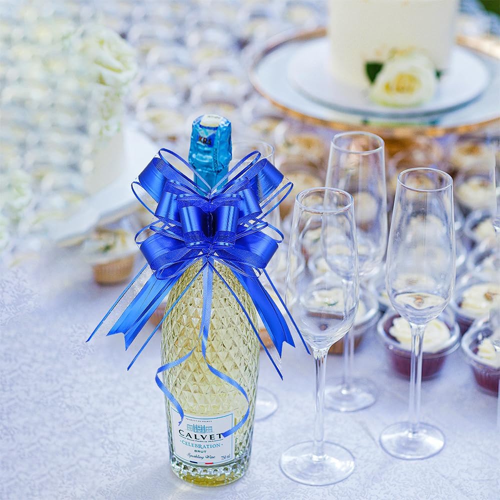 WEWILUCK Bows for Gift Basket - 15PCS Perfect Large Blue Gift Bows for Gift Wrapping, Pull Bows for Man Present Decoration Birthdays Holiday and More(Royal Blue, 6 inches)