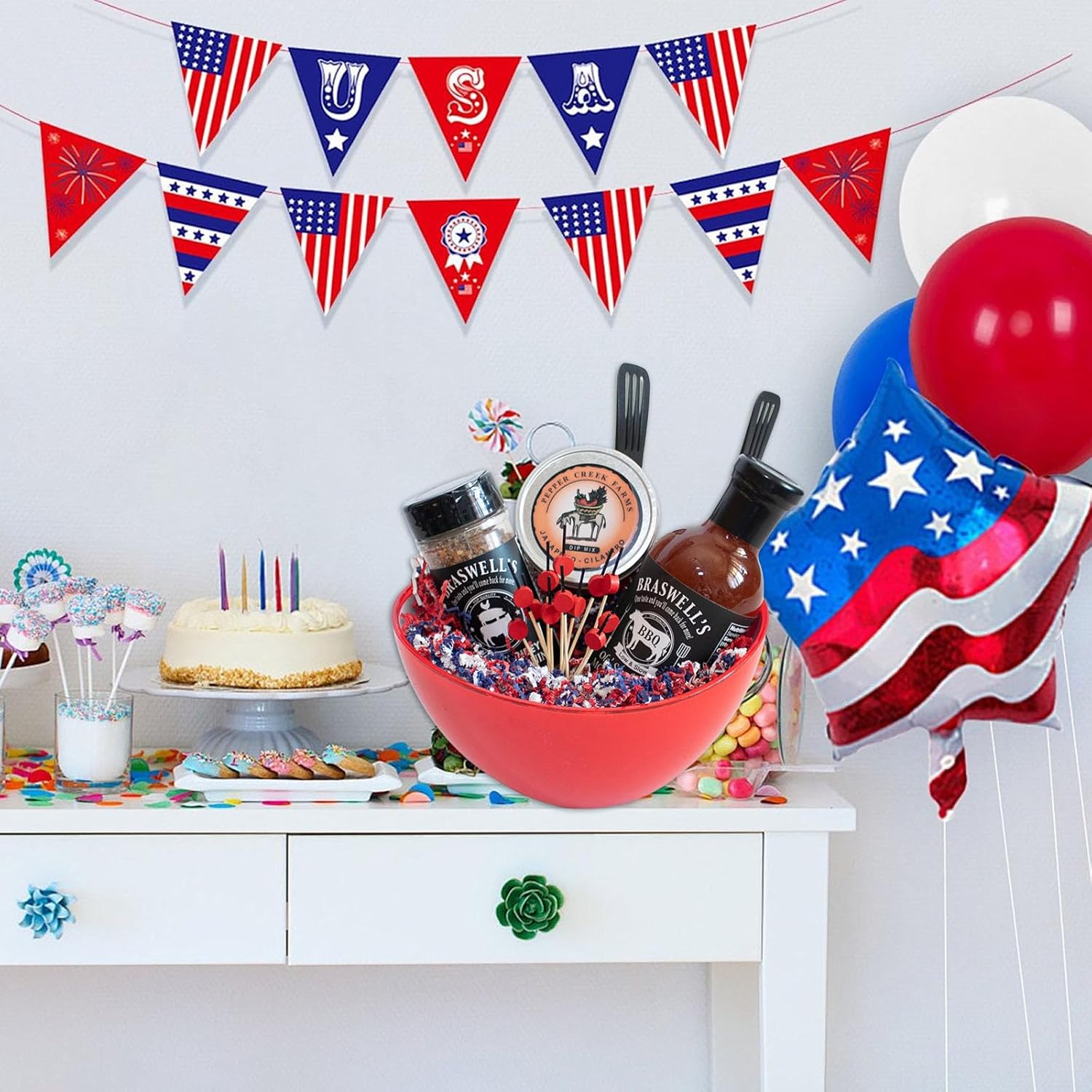 Zankubom 1 LB Crinkle Cut Paper Shred Filler Great for Gift Wrapping, Basket Fillers, Birthday, Gift Wrapping, Independence Day, Halloween Christmas Party Decor Filling Supplies Red White Blue