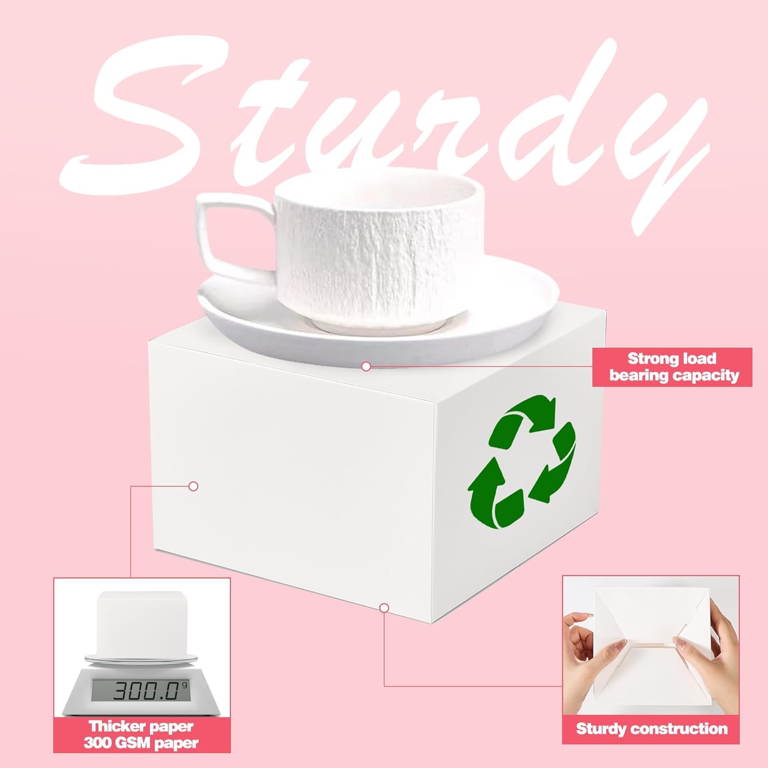 - Easy to Assemble: Simple fold and tuck design. Strong and durable construction that is capable of handling mugs, glasses, jars, and other heavier objects. The sturdy folding design can hold multiple products at once. Add additional tape to make the box even sturdier and more secure. Our gift boxes are strong and reliable. Give a truly unique DIY gift with our high quality gift boxes.