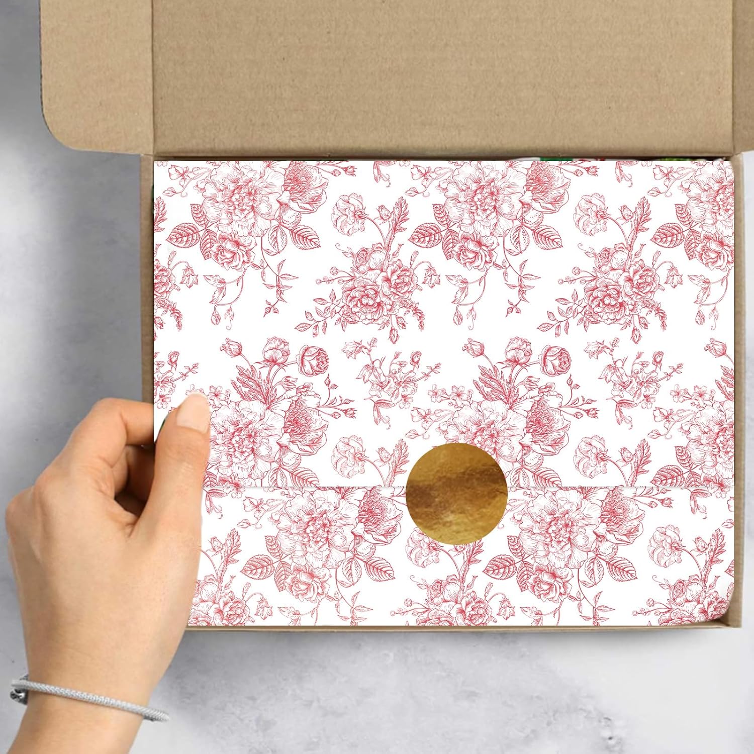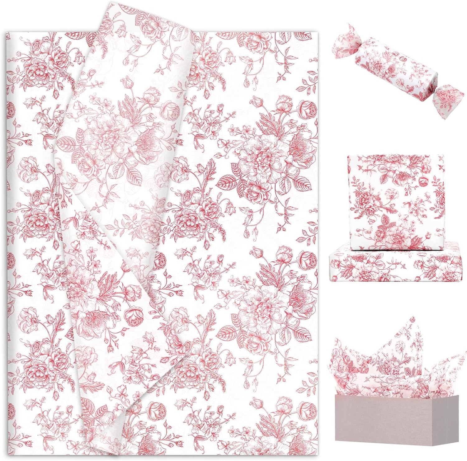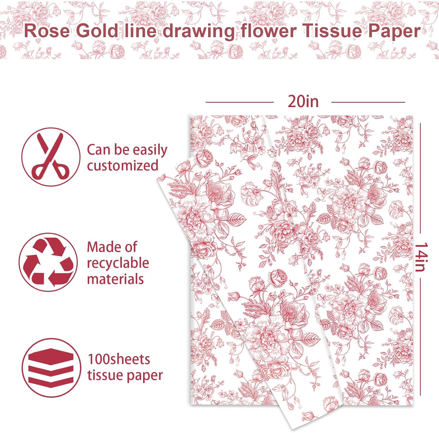 JarThenaAMCS 100 Sheets Floral Tissue Paper Rose Gold Flower Gift Wrapping Paper Vintage Decorative Art Paper for Home Party DIY Crafts Supplies, 14 x 20 Inch