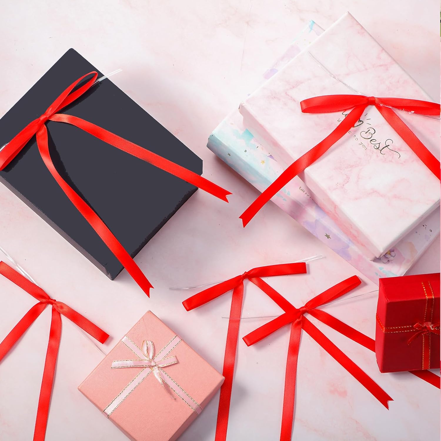 - Red Twist Tie Bows: our package includes 100 red ribbon bows and 100 twist ties; This set will easily meet your various needs for decoration or DIY projects; The dimensions of our bow are approximately 5 x 7 inches/ 12.7 x 17.78 cm; The decent size is suitable for decorating gifts, packages, and other items; You can have fun with family and friend making eye catching decorative pieces by DIY