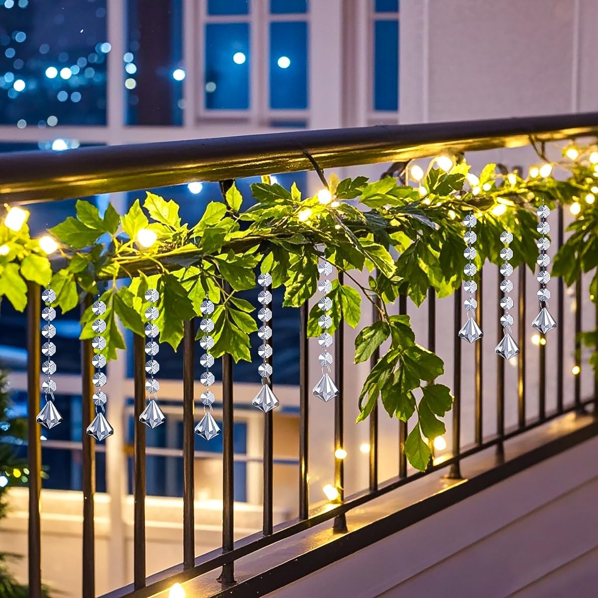 - Elegant Hanging Ornaments: Designed with teardrop acrylic prisms, combined with clear plastic icicle drops adorned with crystal beads, creating a festive and romantic ambiance. Ideal for decorating Christmas trees, centerpieces, chandeliers, windows, and various corners of your home.