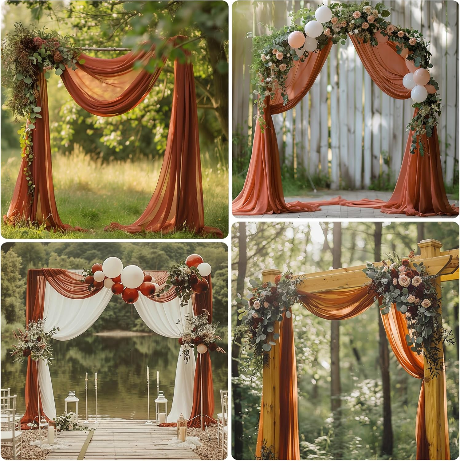 Wedding Arch Draping Fabric 4 Panels 28.7" x 20FT Terracotta Sheer Chiffon Backdrop Drapes for Wedding Ceremony Birthday Party Bridal Shower Outdoor Decoration