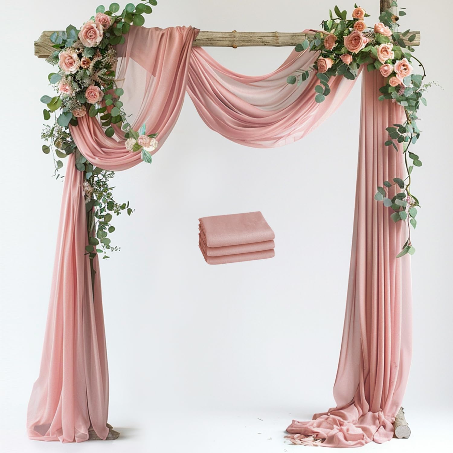 Wedding Arch Draping Fabric 3 Panels 28.7" x 20FT Dusty Rose Sheer Chiffon Backdrop Drapes for Wedding Ceremony Birthday Party Bridal Shower Outdoor Decoration