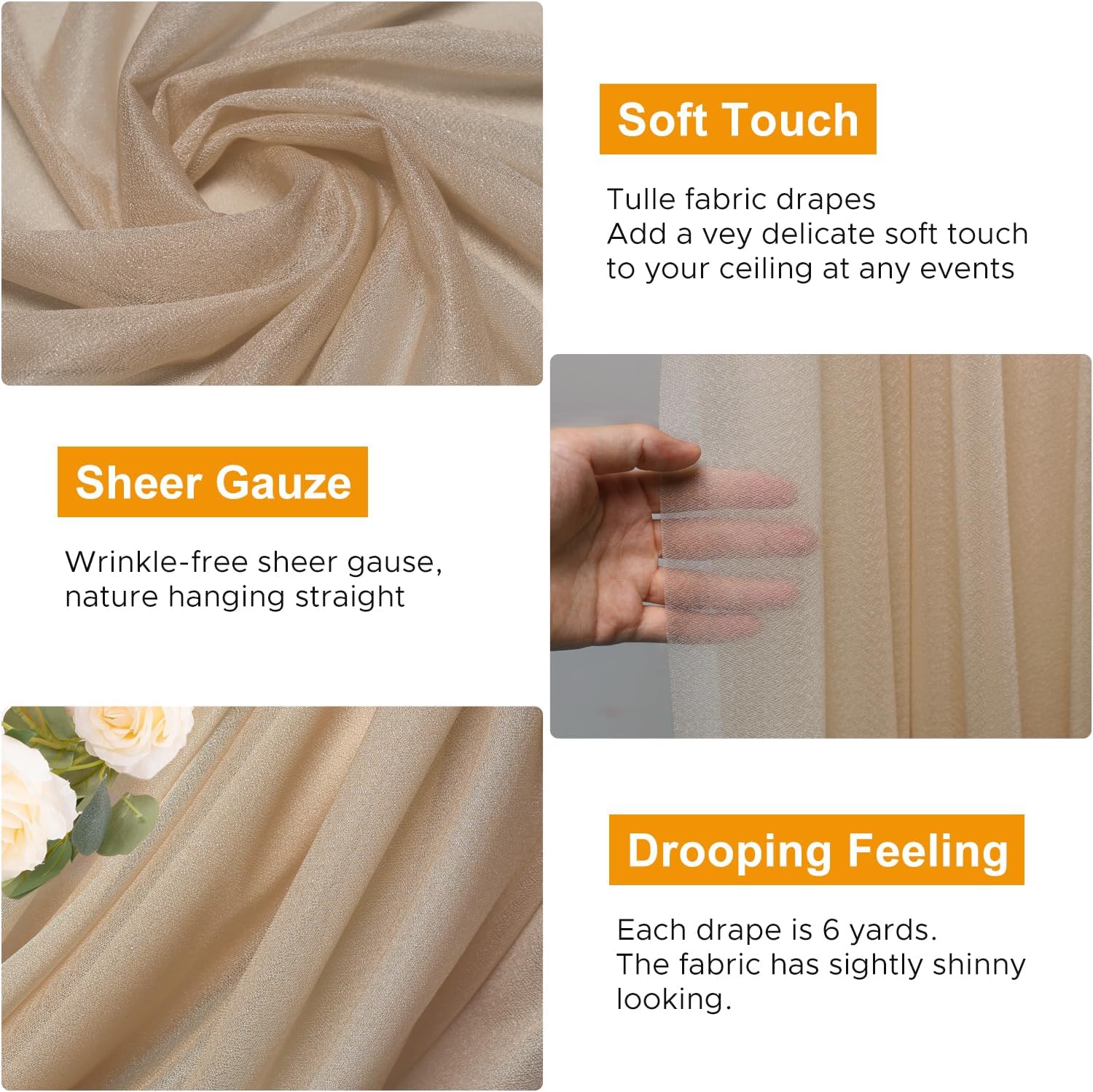 - Elegant Design: This romantic wedding drapes can be used as a decorative element for your arch backdrop. It is an excellent addition to any event decoration. Different colors and multiple quantities to choose from to match any event you want