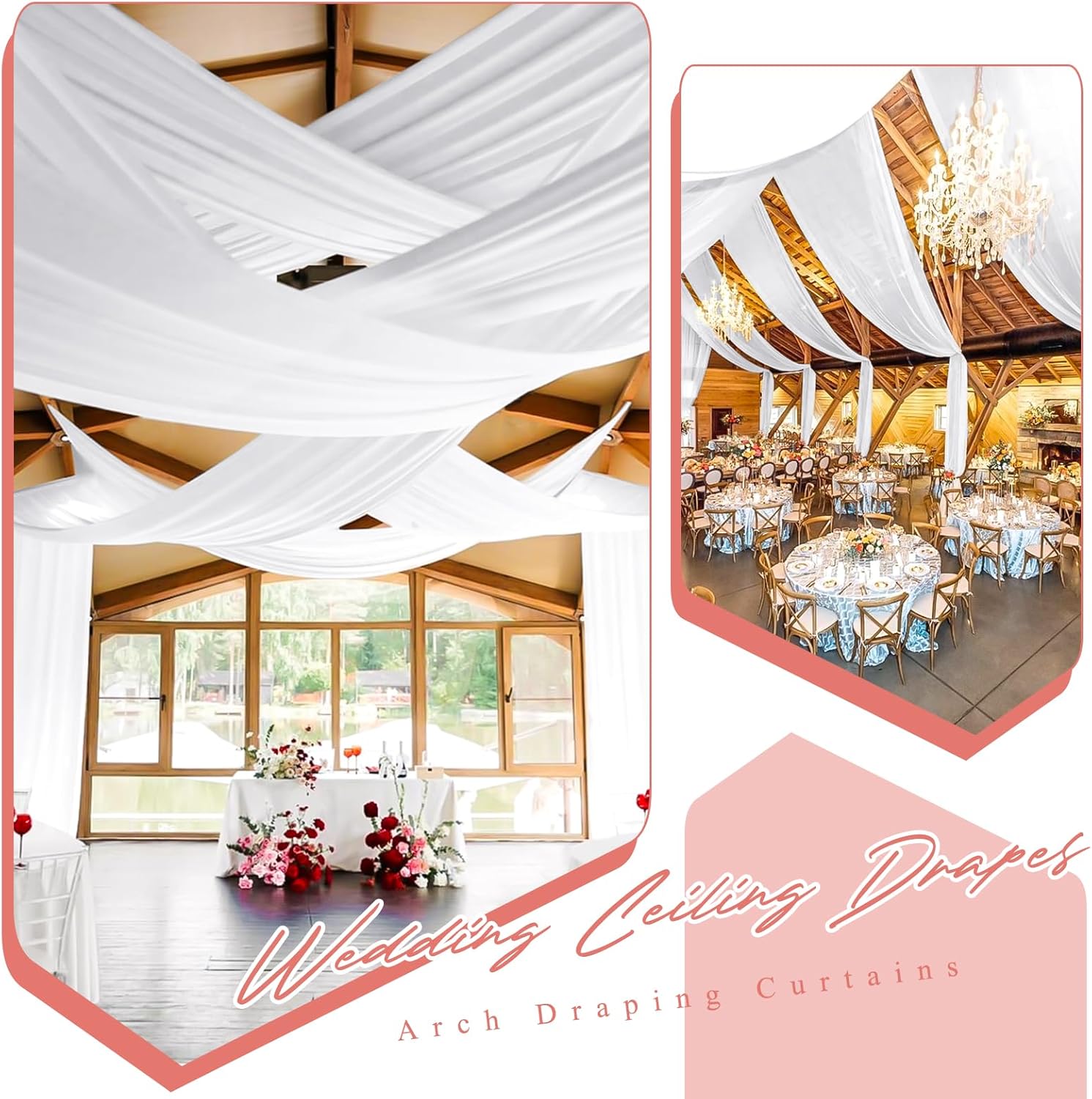 - 【Wedding Ceiling Curtain Widely Used】Wedding drapery ceiling can match well with many decorations, perfect for weddings ceiling, stages, receptions, parties, bridal and baby showers, birthdays, engagement, candy buffets, dessert tables, photography, ceremony and more. The sheer curtain can not only decorate the ceiling but also your arches, backdrop, curtains, chandeliers and so on.