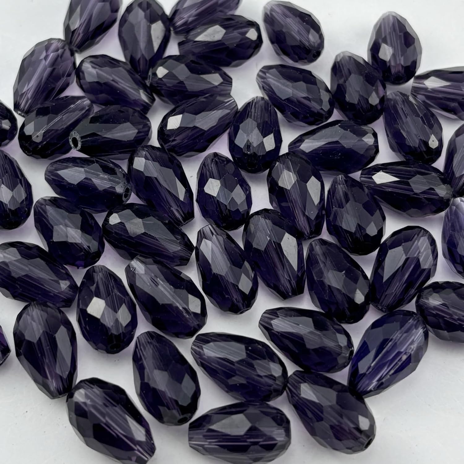 - DIY: Designed with an elegant teardrop shape featuring multiple facets and a central drilled hole, these faceted teardrop beads are sutable for various jewelry projects. With our multifaceted crystal glass beads, you can create beading chains tailored to your personal style—simply thread your string cord through the holes and pair them with your favorite accessories for DIY creations.