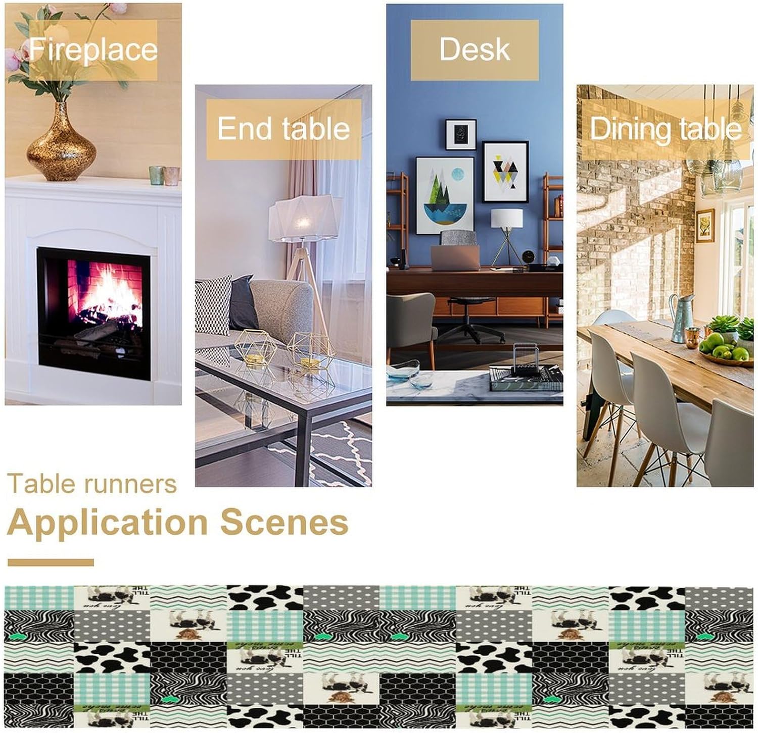 Cute Cow Print Table Runner,Farm Animals Honeycomb Plaid Stripes Cowhide Pattern Tablecloth Burlap for Hotel Indoors Outdoor Dining Room Kitchen Table Decor, 13x70in