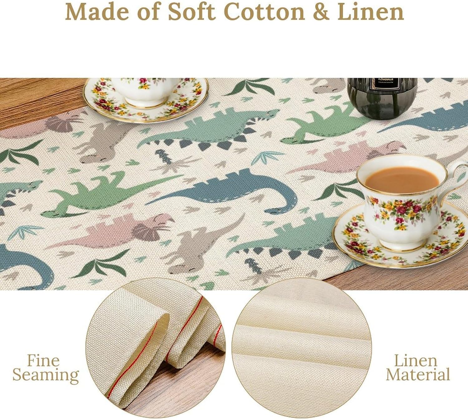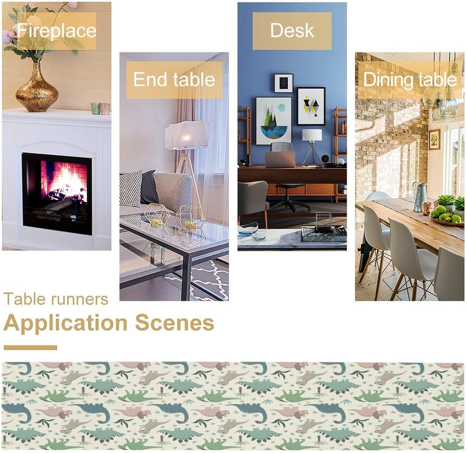 Cartoon Dinosaur Table Runner,Kids Boys Cute Colorful Animal Dino Abstract Print Tablecloth Burlap for Hotel Indoors Outdoor Dining Room Kitchen Holiday Party, 13x108in