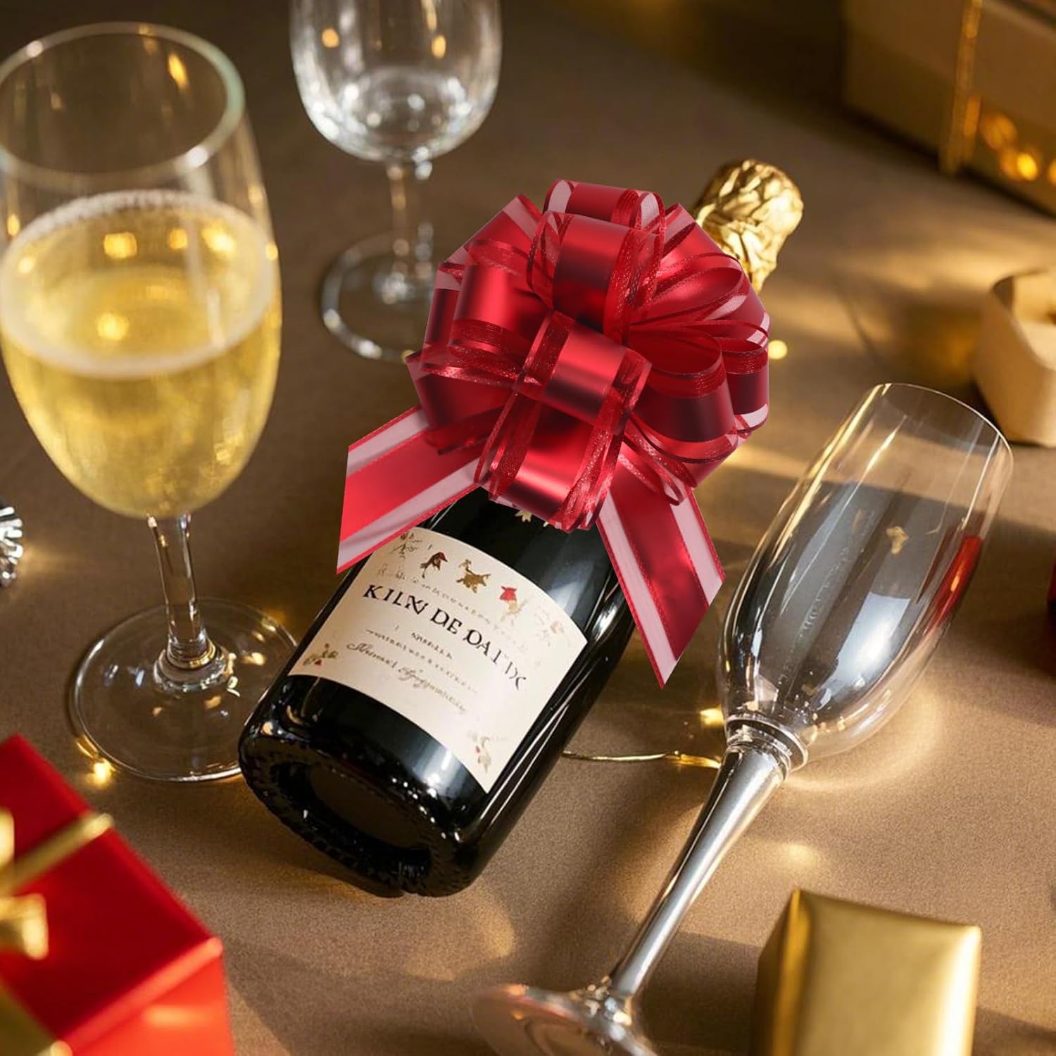 6 PCS 6 Inch Organza Red Pull Bows - Perfect for Gift Wrapping, Wedding Decor, Car Bows, Birthday Parties, Christmas, and Valentine's Day