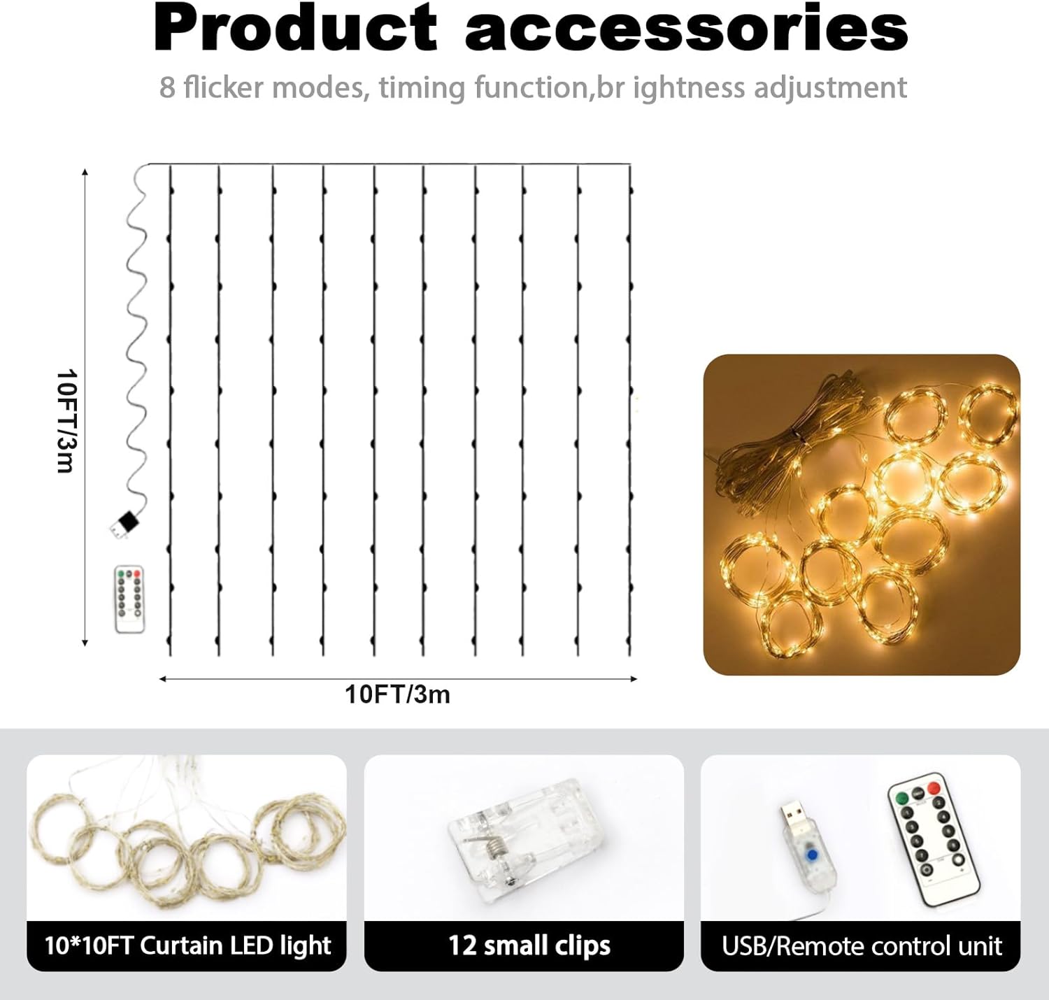 - Installation of the String Lights: The string lights come with 12 transparent clips. During installation, use the clips to attach the light wires to the curtain. The string lights can be powered by USB interface. These string lights are sturdy and durable, so you can install them with confidence.