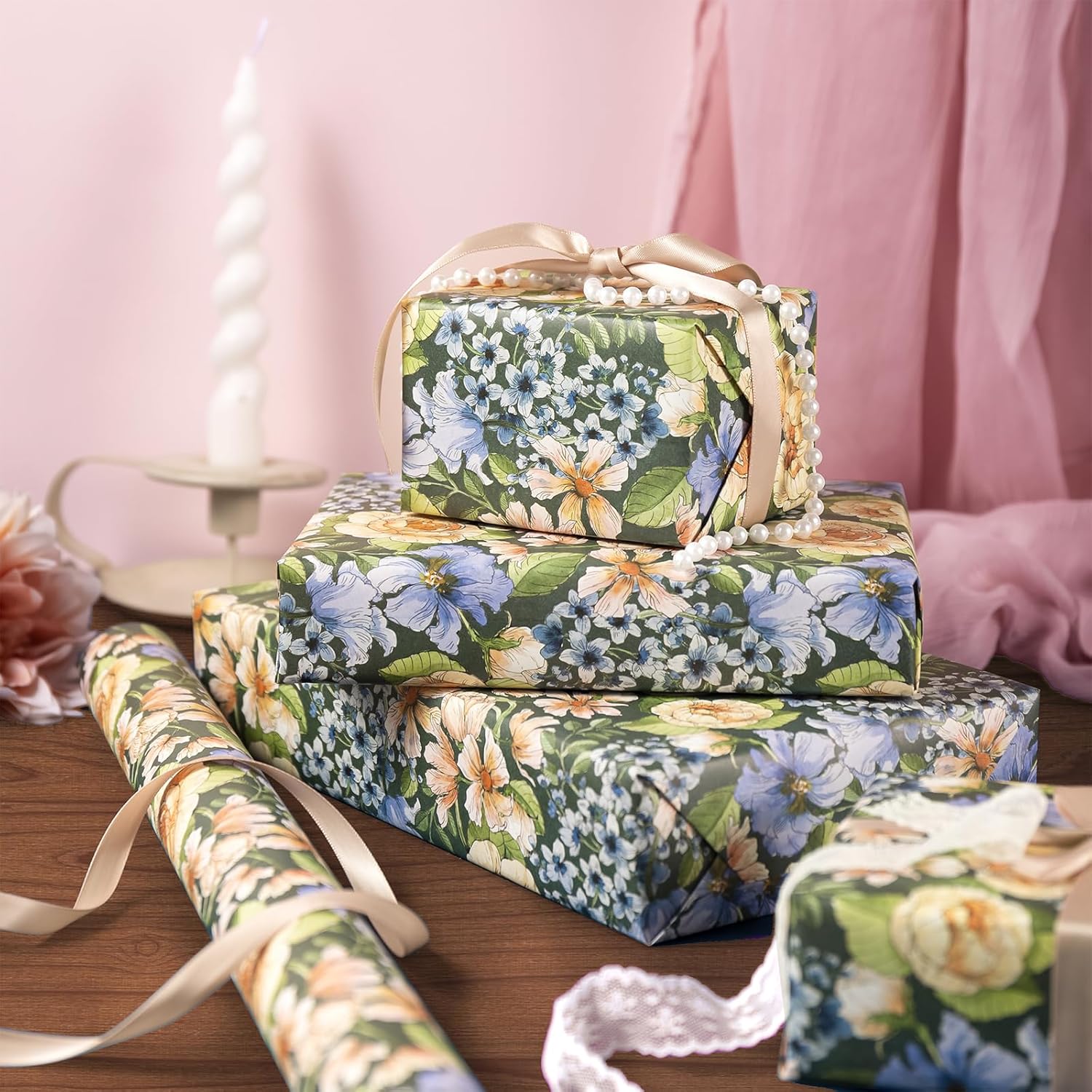 - Kraft Floral Design: Kraft vintage floral wrapping paper design, will make your gift exudes charm and elegance. The flower wrapping paper make it ideal for creating a wonderful gift presentation that leaves a lasting impression.
