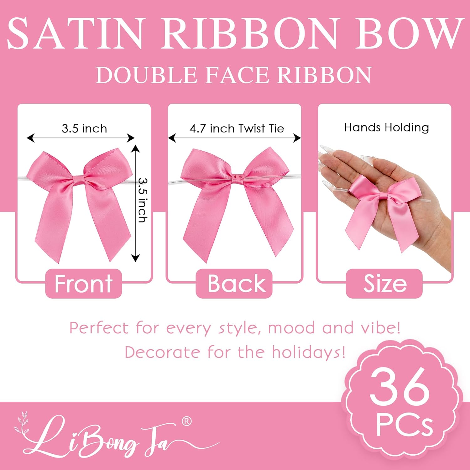 - VALUE PACK: You will receive 36 pieces of twist tie hot pink satin ribbon bows in the package, satisfying your daily decoration demands and replacement needs, and you can share the lovely bows with your families and friends on Holiday.