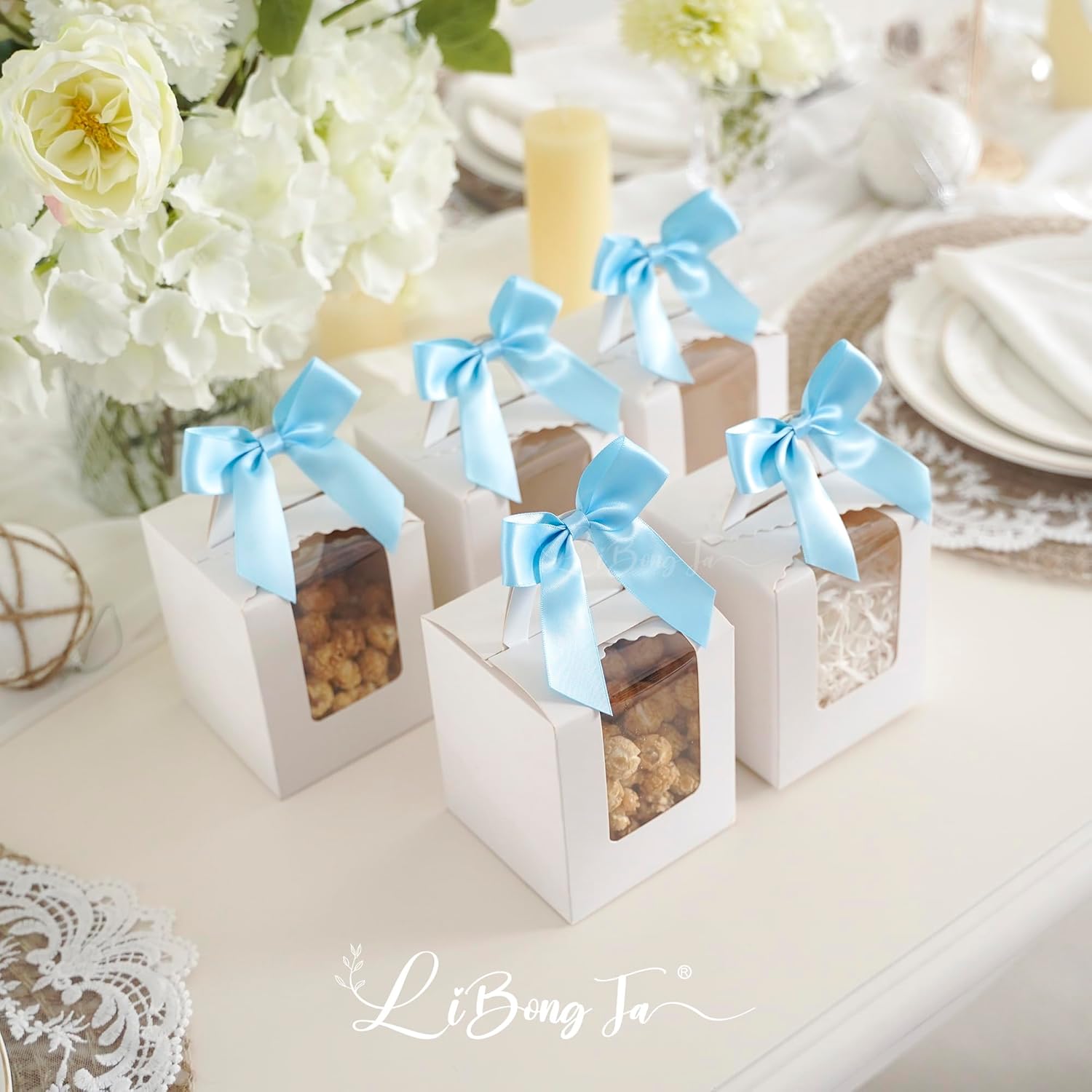 3.5" Blue Bow Satin Pre-Tied Bows for Gift Wrapping, Small Bows for Crafts, Premade Bows, Candy Apple Bows, Twist Tie Bows for Cake Decorating, Party Favor, Wedding Decoration-36 Counts