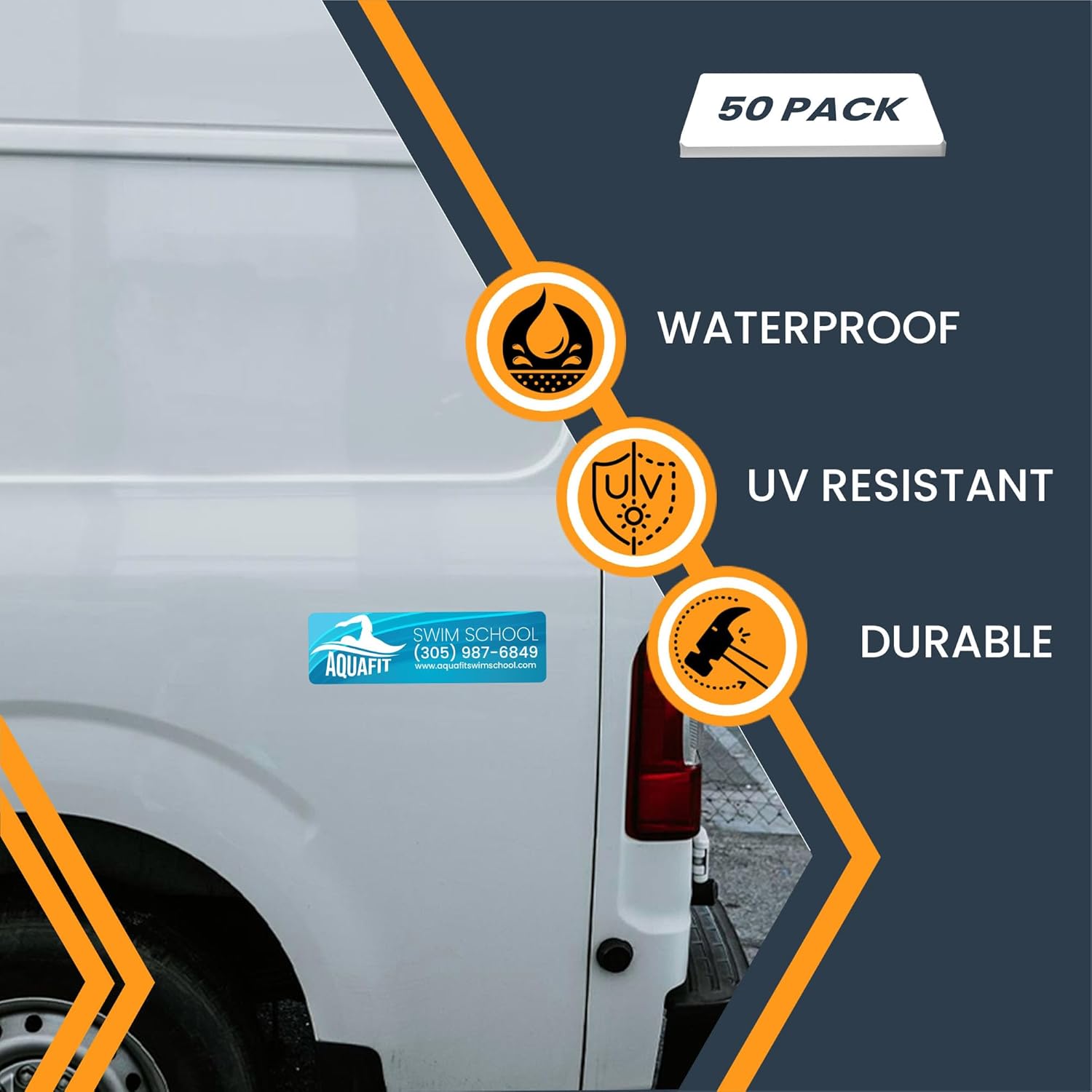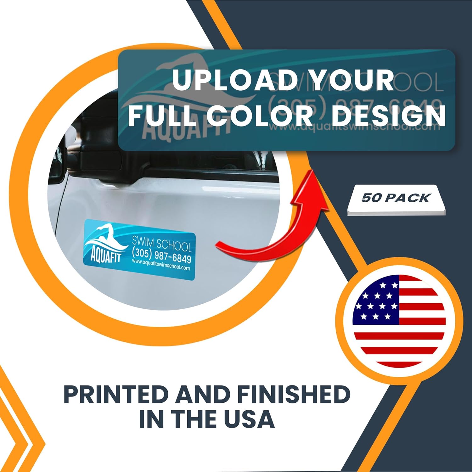 Magnet Me Up Custom 10x3 Inch Rectangle Magnet, 50 Pack, Customizable for Businesses, Personal Use, Choose Your Text, Upload Image, Magnetic Vinyl for Car and Any Magnetic Surface, Crafted in USA