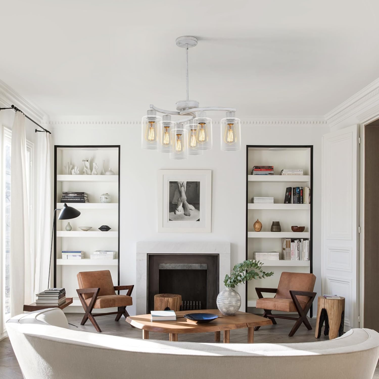 - Dimmable: Max 6 x 60W, E26 Base (bulb not included), compatible with LED, incandescent, CFL, halogen. White hanging chandelier also compatible with dimmer, you can use a dimmable bulb to create a warm and relaxed atmosphere (Dimmer switch need to buy separately).