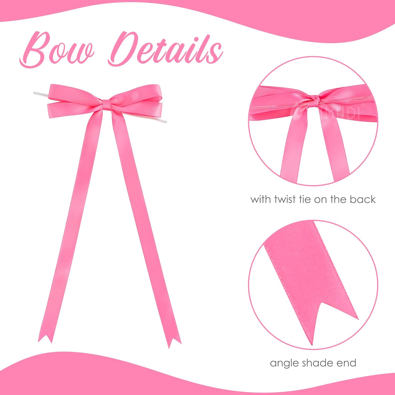 - [Size]: You will receive 36 pieces hot pink twist tie bows, each bow is 10 inches long and 5 inches wide, the end of the bow adopts a fishtail design, which is delicate and cute. Sufficient quantity allows you to have unlimited possibilities for your handicrafts.