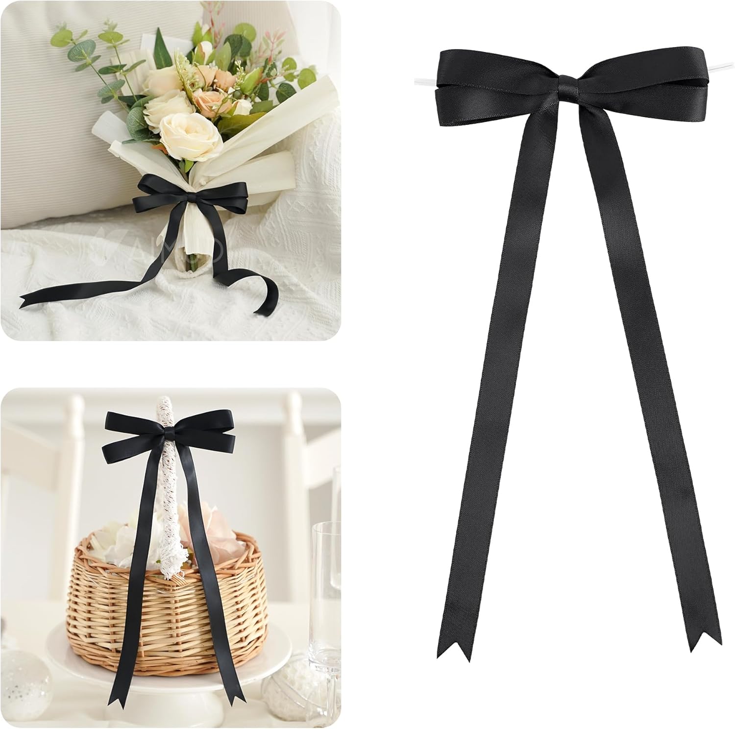 - [Size]: You will receive 36 pieces black twist tie bows, each bow is 10 inches long and 5 inches wide, the end of the bow adopts a fishtail design, which is delicate and cute. Sufficient quantity allows you to have unlimited possibilities for your handicrafts.