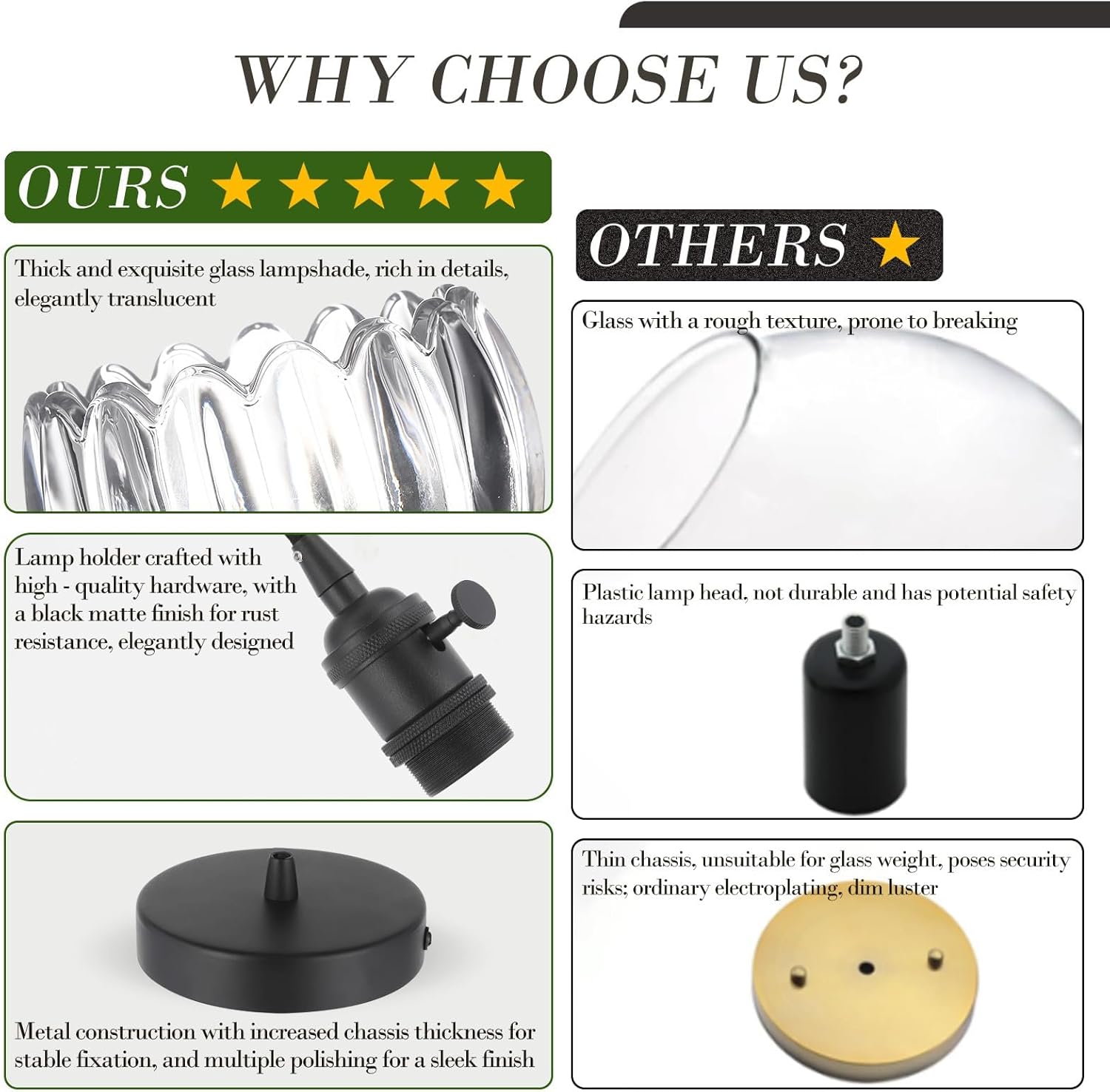 - 【Exquisite Tulip】The clear tulip - shaped lampshade, made from highly transparent glass, emits a romantic and noble charm. It acts as a beautiful pendant light shade, casting an elegant glow that can transform any space, whether it's a kitchen or a living room