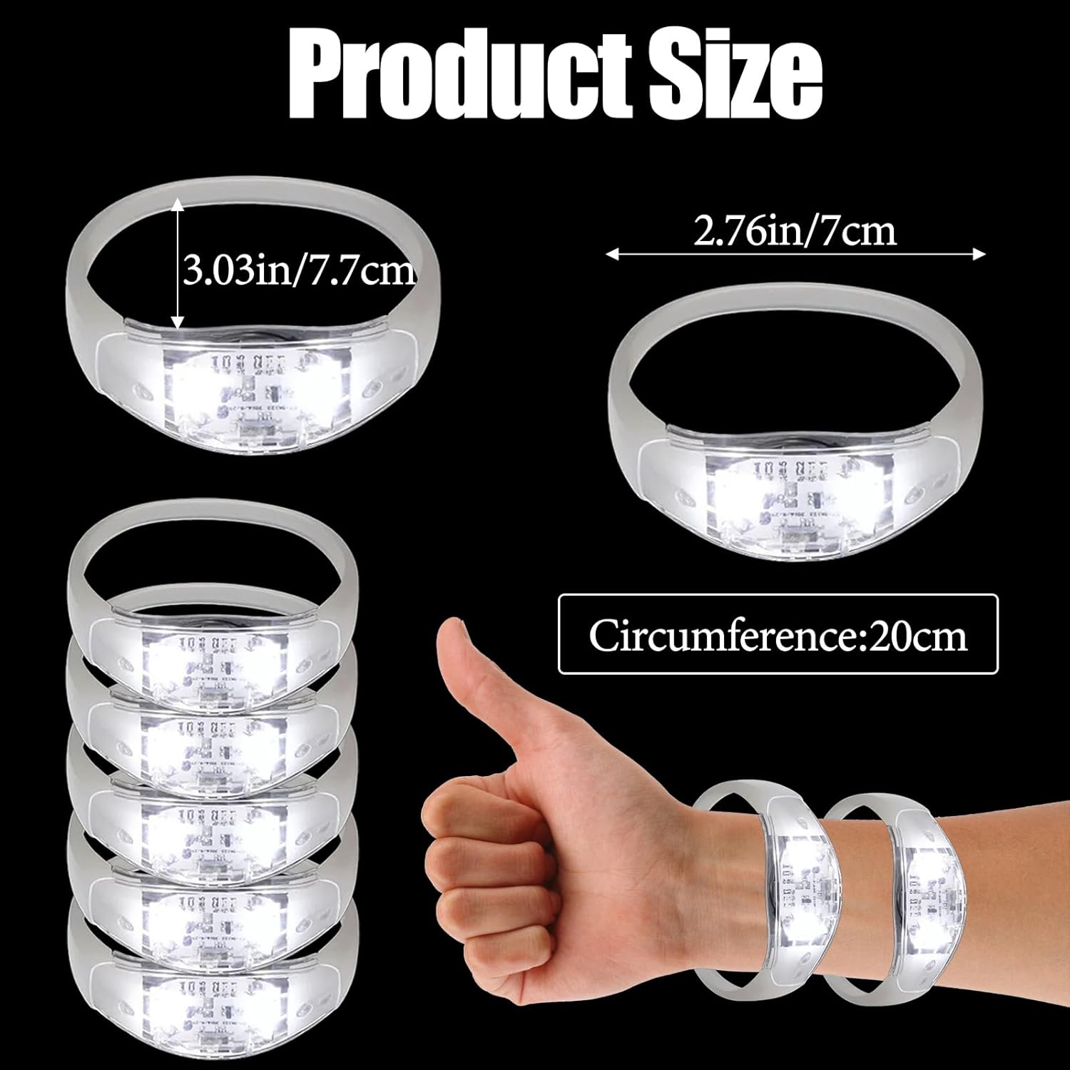 100 Pcs LED Bracelets Sound Activated with Flashing LED Strobe Music Control Light Up Bracelets for Rave, Game Prizes, Birthday Party Favor,Valentine's Day gift
