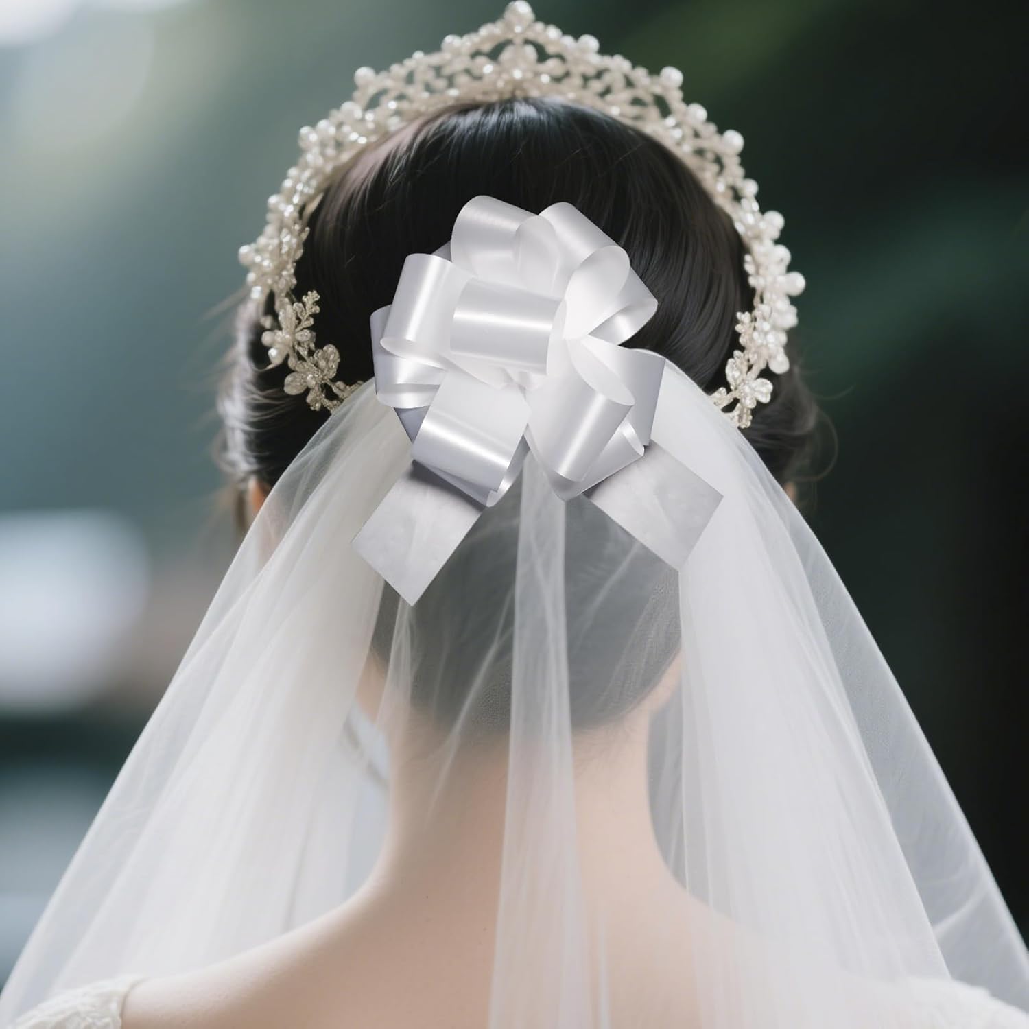 12 PCS 6 Inch White Pull Bows - Perfect for Gift Wrapping, Wedding Decor, Car Bows, Birthday Parties, Christmas and Valentine's Day
