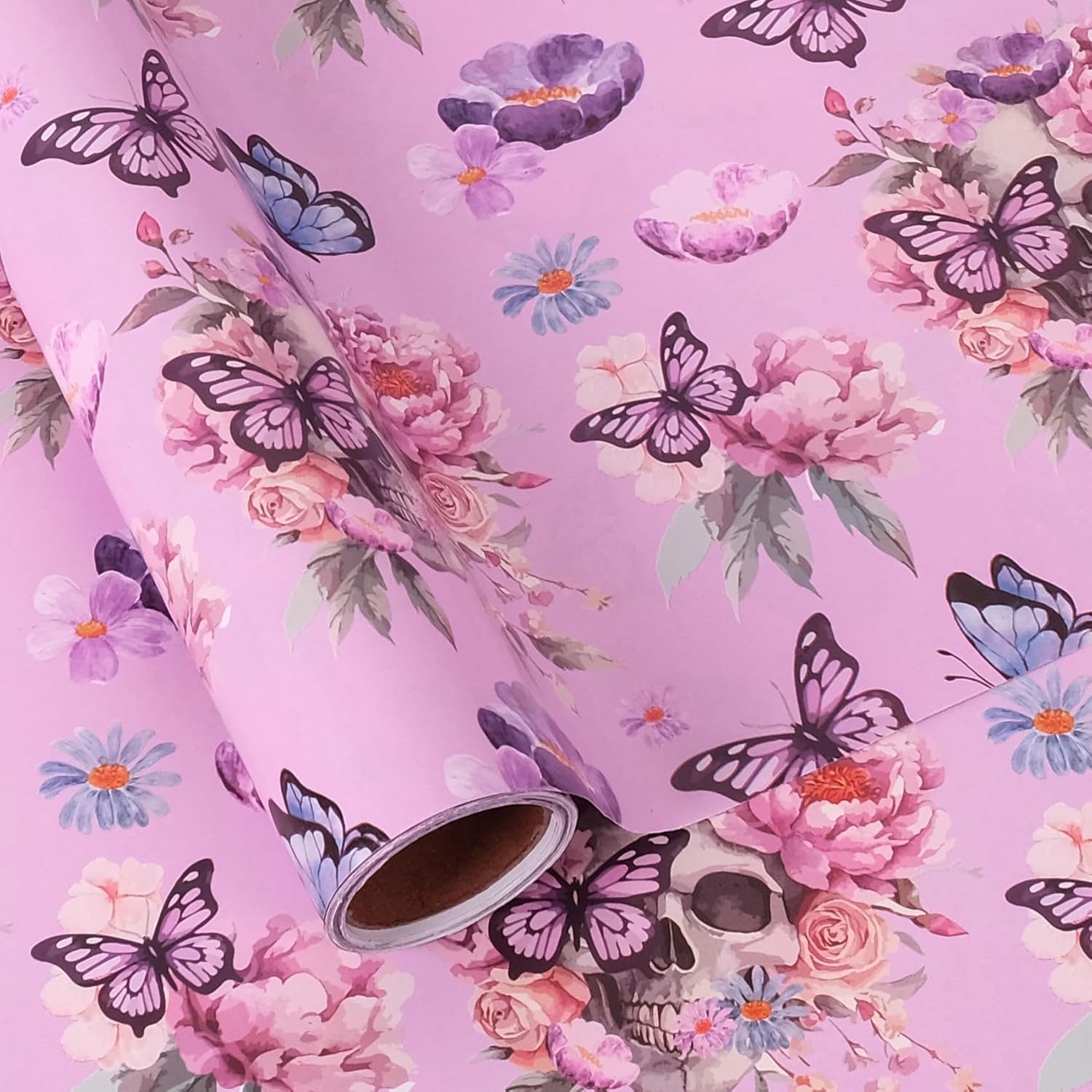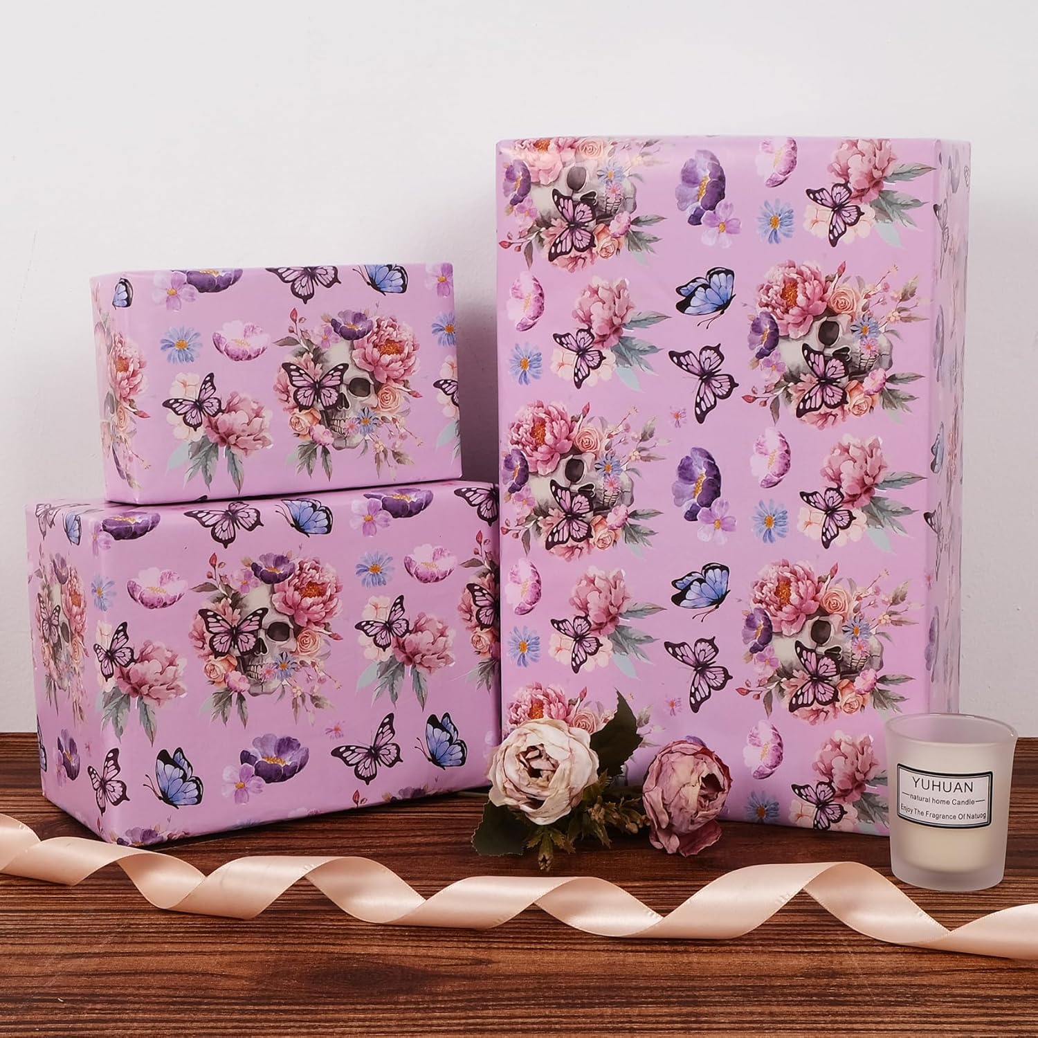 - Unique & Funny Skull Flower Design - Beautiful and feminine designs, different lovely flowers are printed on thick wrapping paper, which make it ideal for creating a wonderful gift presentation that leaves a lasting impression