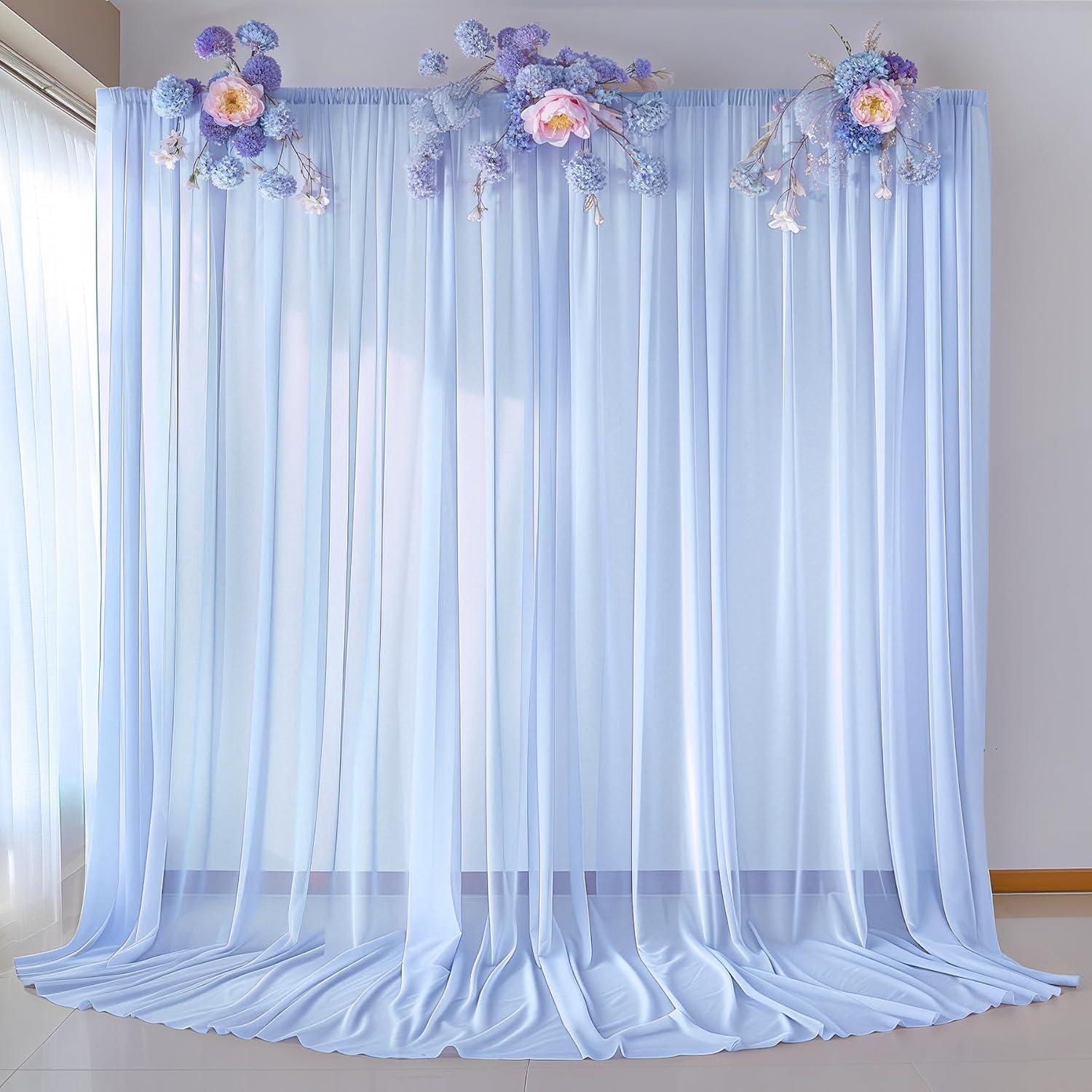 10ft x 10ft Baby Blue Backdrop Curtains, Wrinkle-Free Sheer Chiffon Fabric Photo Backdrop Draping Fabric for Wedding Arch Baby Shower Gender Reveal Photography Decorations